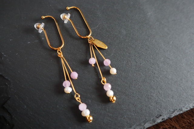 クンツァイトと淡水パールを使用した、動くたびに重なり揺れるレイヤーデザインの両耳用イヤーカフ。 天然石の輝きが存在感を放ちます。 入学式などのセレモニーにもぴったり◎ イヤーカフの形状をお選びください。 ①U字型イヤーカフ ②C型3wayイヤーカフ ※一つ一つ手作りしておりますので、同じ商品でも石の風合いなど、デザインに若干の違いがあります ★U字型イヤーカフの特徴 ◎着けていることを忘れる、やさしいフィット感 ◎耳の痛みが苦手な方におすすめ ◎イヤリングのように真下に垂れ下がるデザイン ◎耳のくぼみが浅い人や軟骨が柔らかい人など、耳の形状によっては落ちやすい場合もあります ★C型3wayイヤーカフの特徴 ◎落ちにくく痛みが出る方も少ない ◎開き具合が調整できる ◎U字タイプより少し上に着くイメージ ◎3way仕様なのでチャームを取り外し、シンプルに使える&シリコンを外すと指輪としても使えます どちらもアレルギーが心配な方にもやさしい素材 耳に触れる部分には、医療用にも使われるサージカルステンレスを使用。 丈夫でさびにくく、金属アレルギーの方にも安心してご使用いただけます。 ◎カジュアルにも、特別な日にも さりげない華やかさが魅力。普段使いはもちろん、パーティーやお出かけにもぴったり。 どんなコーディネートにも自然になじみます。 ※ピアスへの変更ご希望の方は、お問い合わせよりメッセージをお願いします。 ⭐︎ クンツァイト(9月誕生石) ・感情の安定 ・心の安らぎ ・自分を愛せるようになる ・見返りを求めない無償の愛をもたらす ◎淡水パール(6月誕生石) ・幸運や品格、魅力を高める ・邪気を払う ・内外面共に女性らしさを得る手助けをする サイズ U字型 ・イヤーカフ部分:約2cm×1.3cm ・全長:約7.3cm C型3way ・イヤーカフ部分:直径約2cm ・全長:約6.6cm 素材 イヤーカフ部分: ・サージカルステンレス(SUS304) ・24KGPメッキ(ニッケルフリー加工) その他パーツ: ・サージカルステンレス(SUS316) ・真鍮+K16GP鍍金 ご注意点 ・天然石のため、色や形には個体差がございます。 ・強く引っ張ったりせず、やさしくお取り扱いください。 ・写真と実物の色味は、お使いの端末によって多少異なる場合があります。