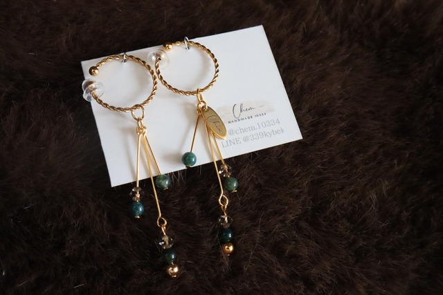 ターコイズ(トルコ石)を使用した、動くたびに重なり揺れるレイヤーデザイン。 天然石とガラスビーズの輝きが存在感を放ちます。 チャームが取り外し可能なので、シンプルにも楽しめます。(サイズ調整可) また、シリコンを外すと指輪としても使用可能な3way仕様です。 . ◎簡単に着脱できて、落ちにくいデザイン。 普段イヤリングが痛い方やお子様でも大丈夫◎ 着けていることを忘れる着け心地です。 . ◎アレルギーが心配な方にもやさしい素材 耳に触れる部分には、医療用にも使われるサージカルステンレスを使用。 丈夫でさびにくく、金属アレルギーの方にも安心してご使用いただけます。 . 一つ一つ手作りしておりますので、同じ商品でも、石の風合いなど、デザインに若干の違いがあります。 . ※バラ売りご希望の方はお問い合わせよりメッセージをお願いします。 ◎ターコイズ(12月の誕生石) ・神が宿る石 ・勇気と希望 ・人と人を繋ぐ ・旅行・交通のお守り ・邪気払い イヤーカフ部分:直径約2cm 全長:約6.6cm -素材- イヤーカフ部分: サージカルステンレス(SUS304) 24KGPメッキ、ニッケルフリー加工 その他パーツ: ・サージカルステンレス(SUS316) ・真鍮+K16GP鍍金 ⚫︎注意事項⚫︎ ・天然石のため、色や形には個体差がございます。 ・強く引っ張ったりせず、やさしくお取り扱いください。 ・写真と実物の色味は、お使いの端末によって多少異なる場合があります。