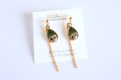 雫型【モスグリーンハーフ】ボールチェーン付き ゴールドイヤリング・ピアス (金属アレルギー対応)