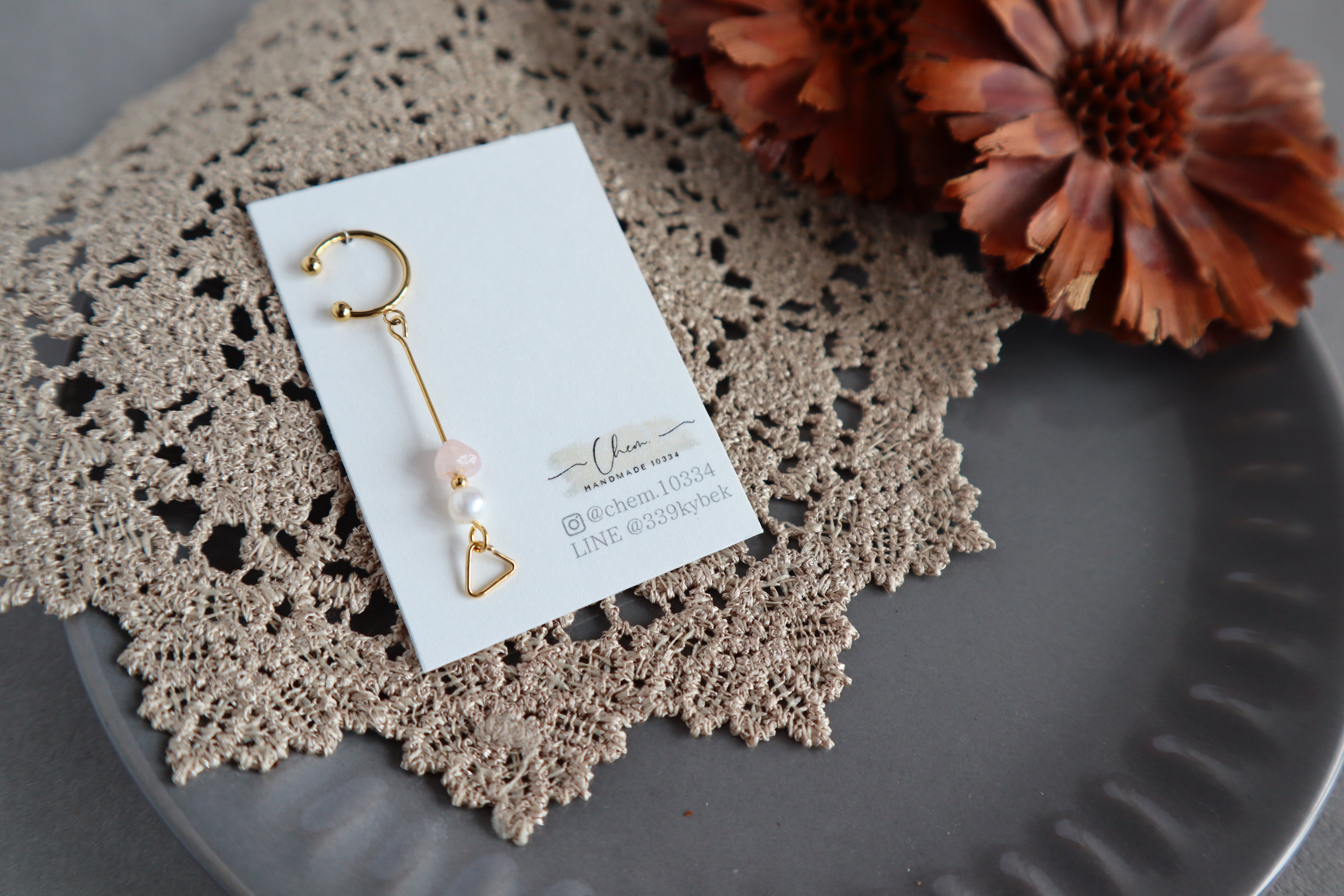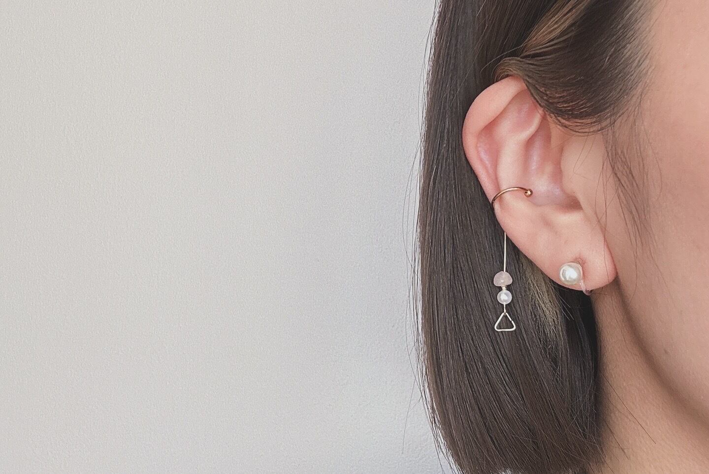 柔らかく優しい色合いのローズクォーツと淡水パールが耳元で華やかに輝くイヤーカフ。