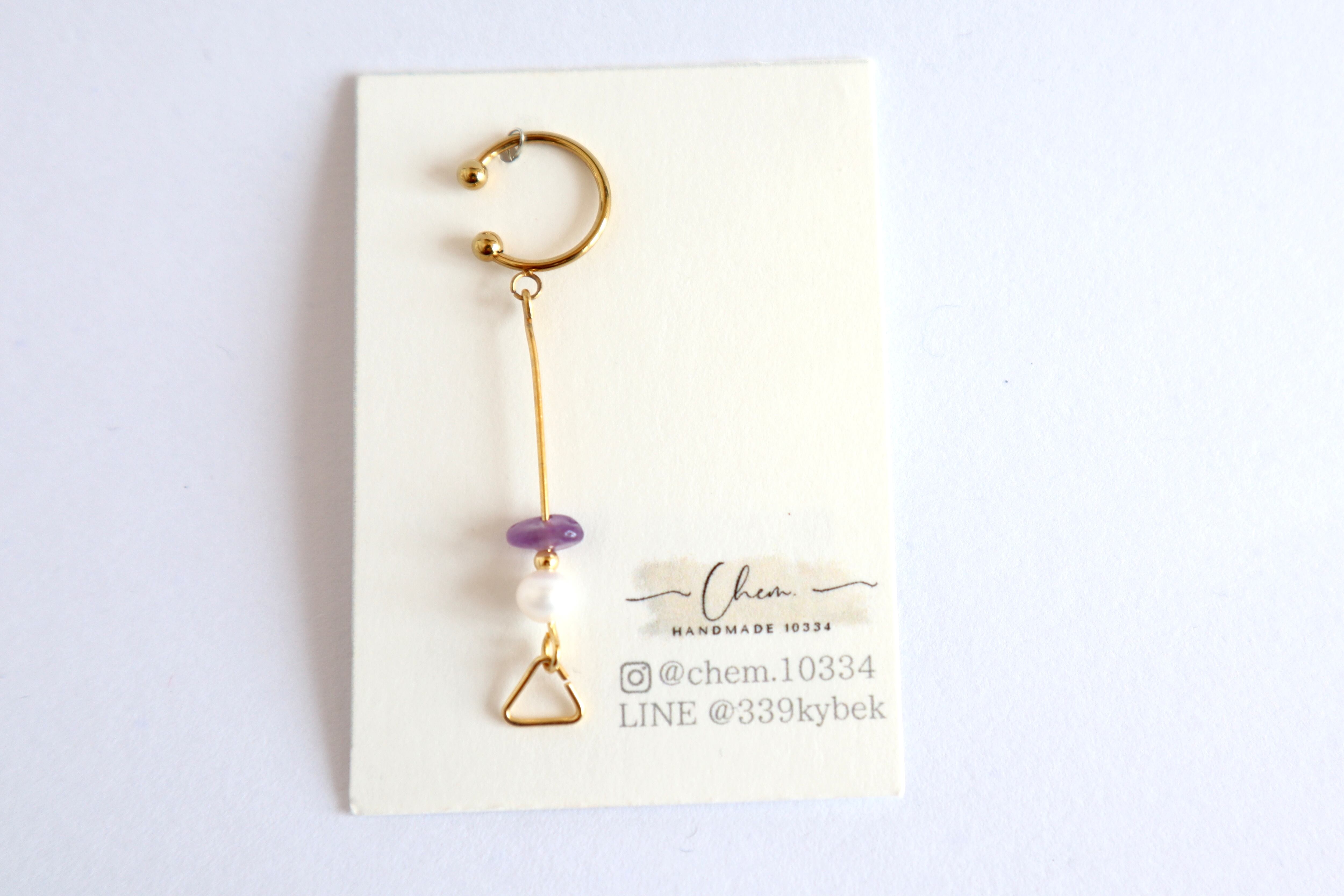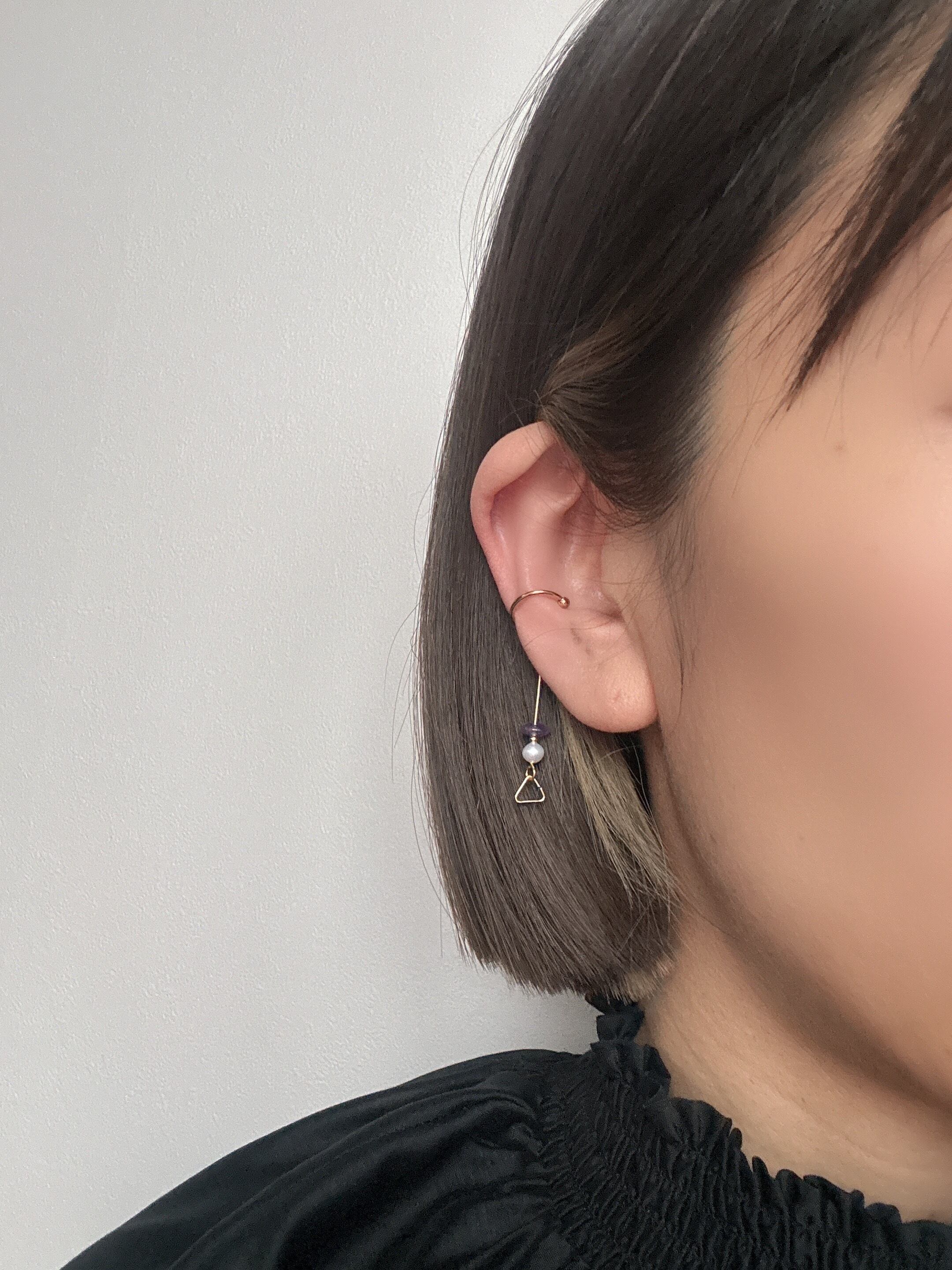 アメジストと淡水パールが耳元で華やかに輝くイヤーカフ。