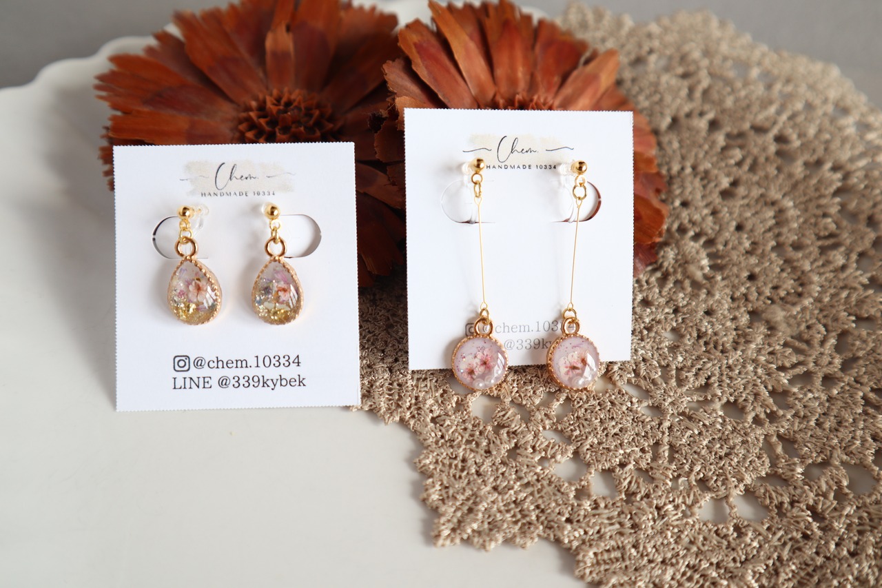 金属アレルギー対応の樹脂タイプのイヤリングパーツを使用しております。