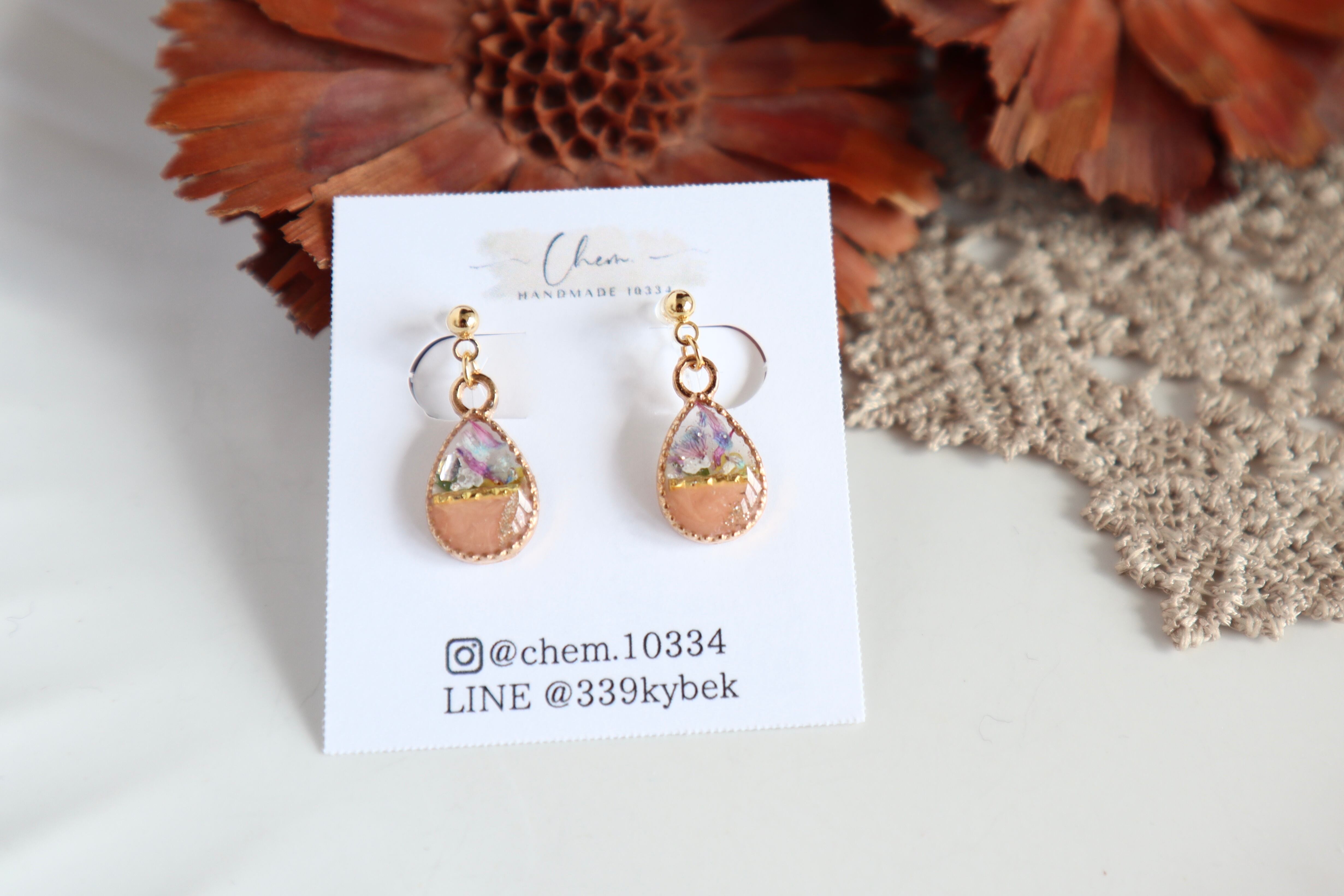 雫型【アプリコットオレンジハーフ・花(Fleur)】ゴールドイヤリング・ピアス (金属アレルギー対応)