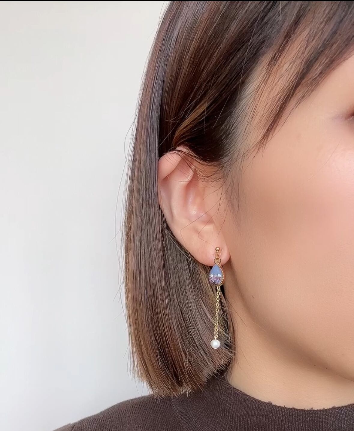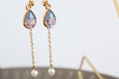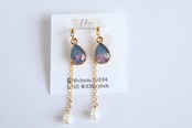 淡水パールチェーン付きの雫型イヤリング・ピアスです。