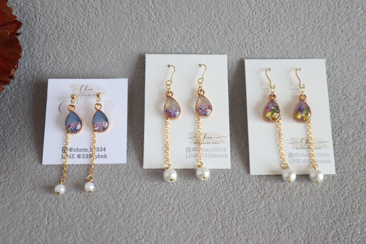 金属アレルギー対応の樹脂タイプのイヤリングパーツを使用しております。