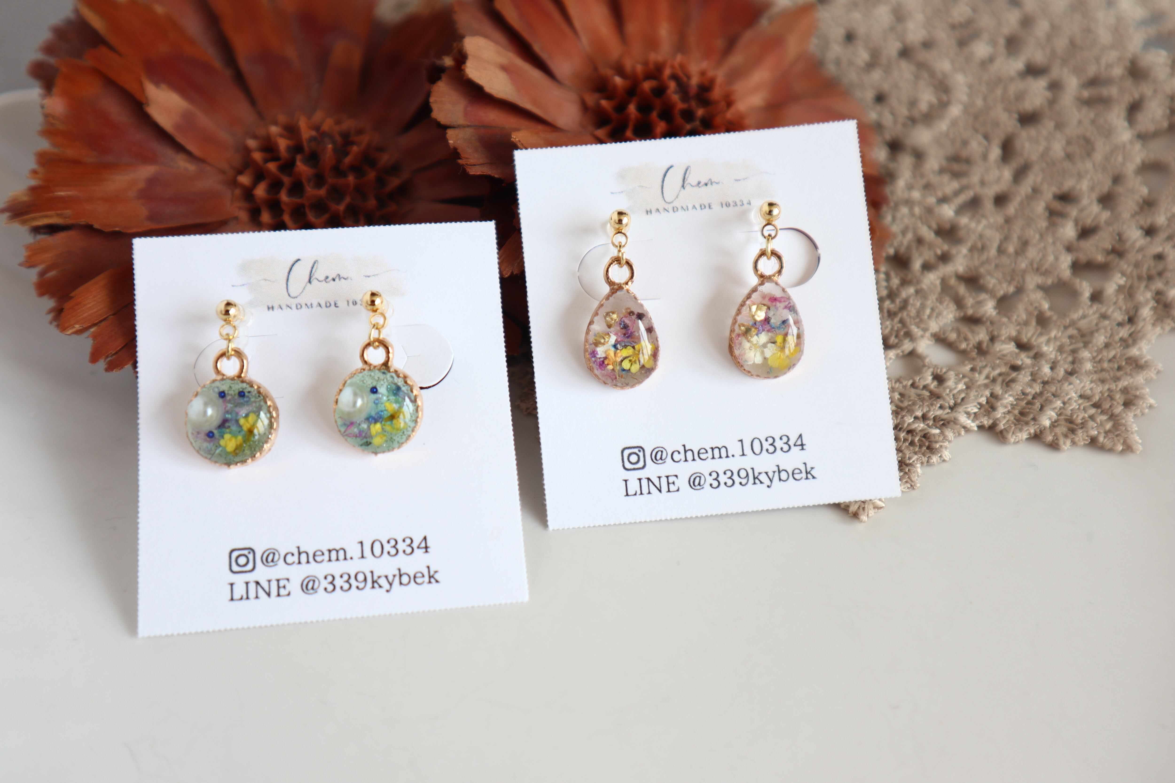 金属アレルギー対応の樹脂タイプのイヤリングパーツを使用しております。