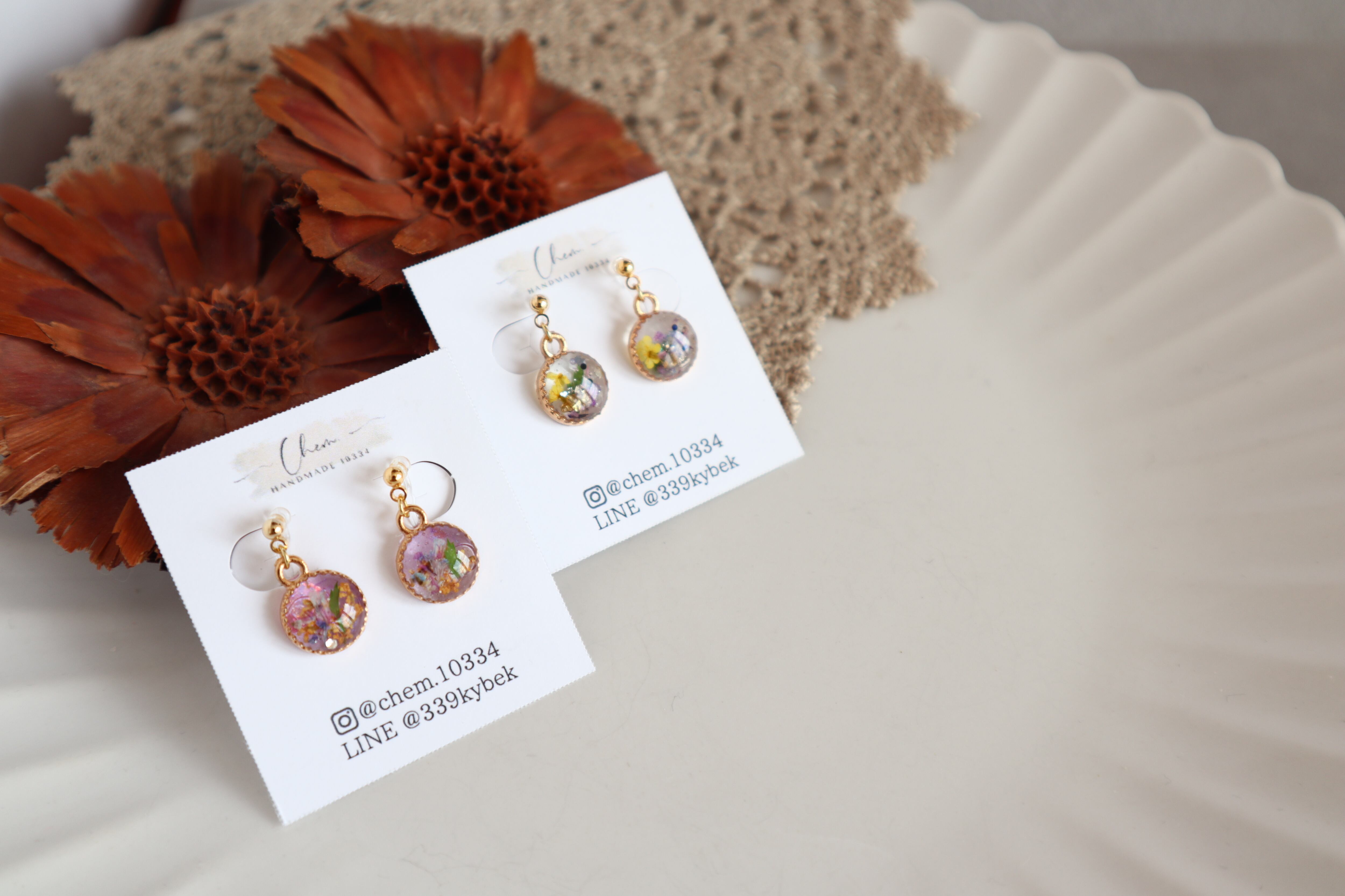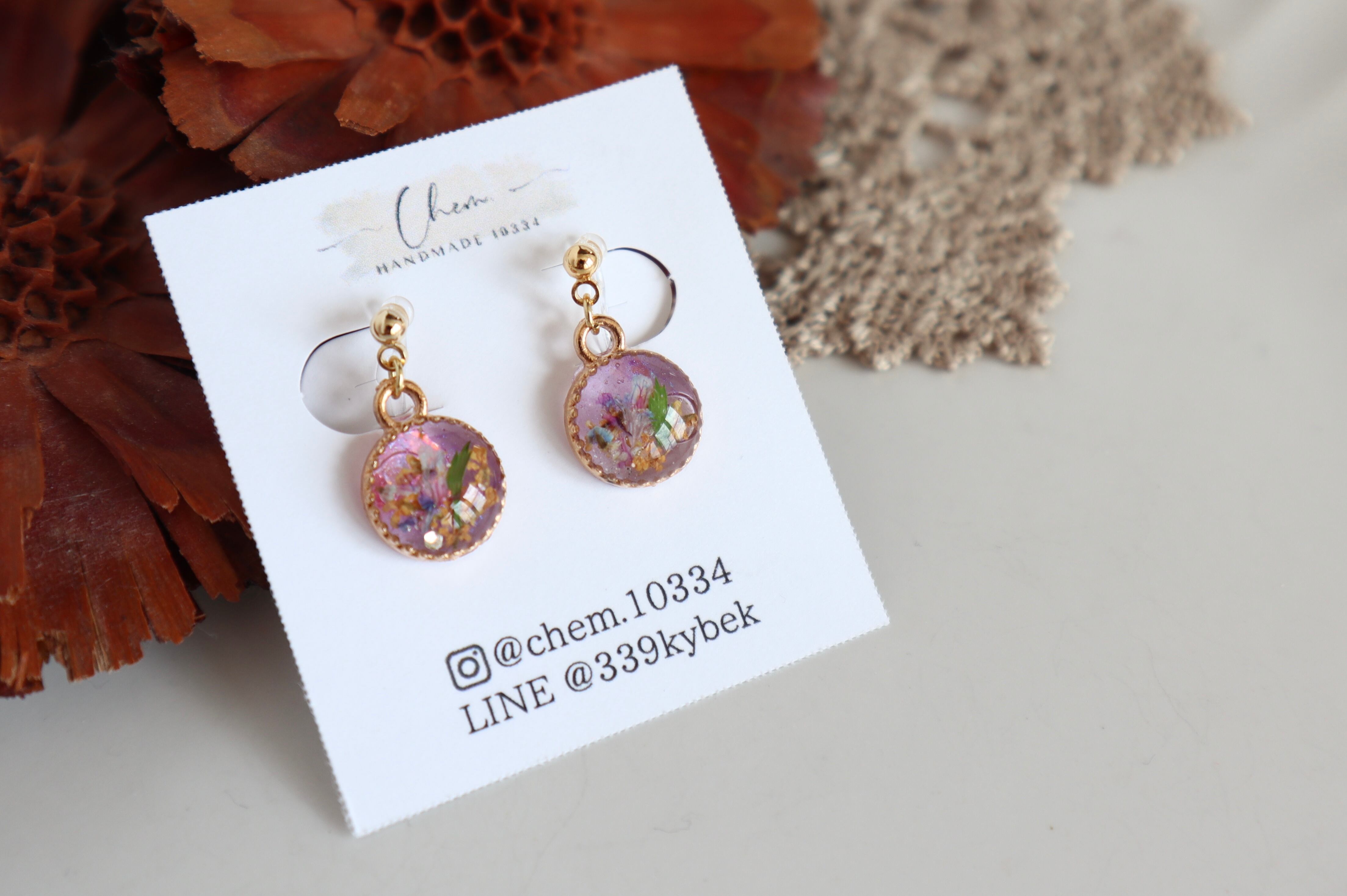 金属アレルギー対応の樹脂タイプのイヤリングパーツを使用しております。
