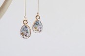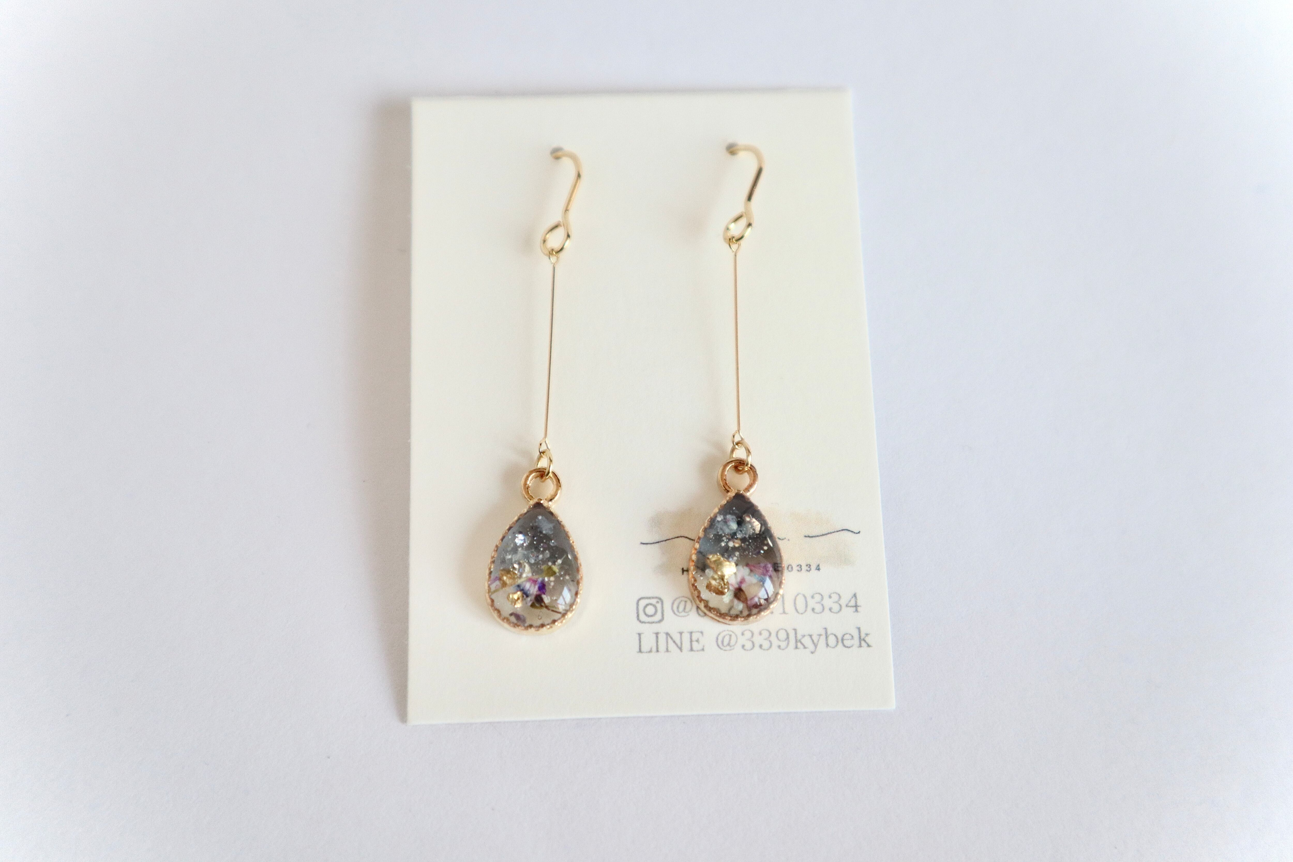 雫型【ライトグレーハーフ・花(Fleur)】ロングタイプ ゴールドイヤリング・ピアス (金属アレルギー対応)
