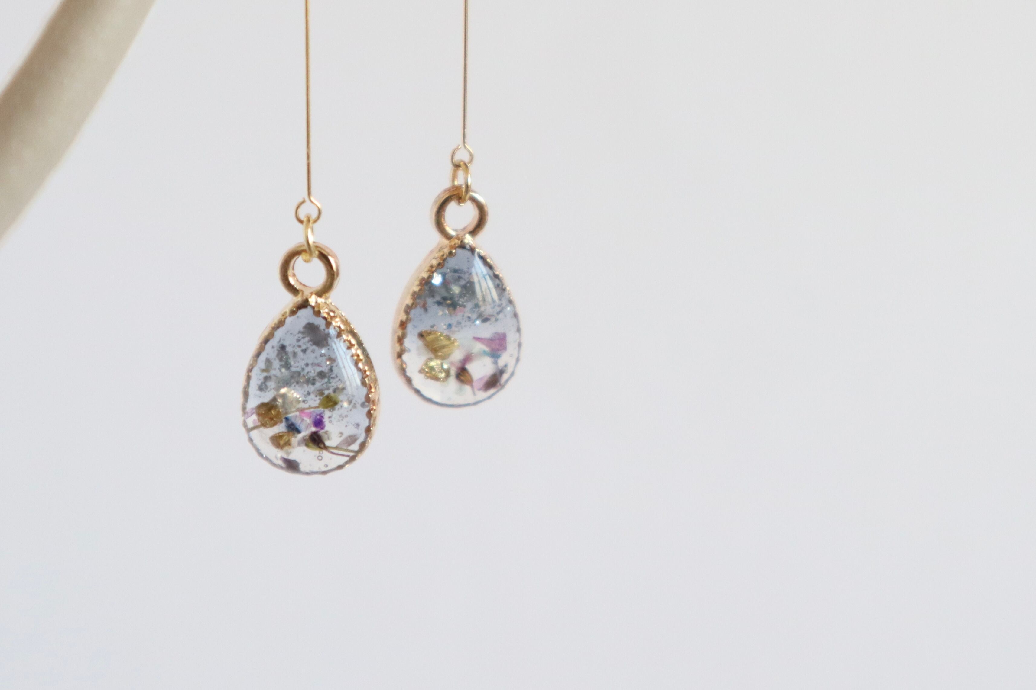 『Fleur(花)フルールシリーズ』雫型 ロングタイプのイヤリング・ピアスです。