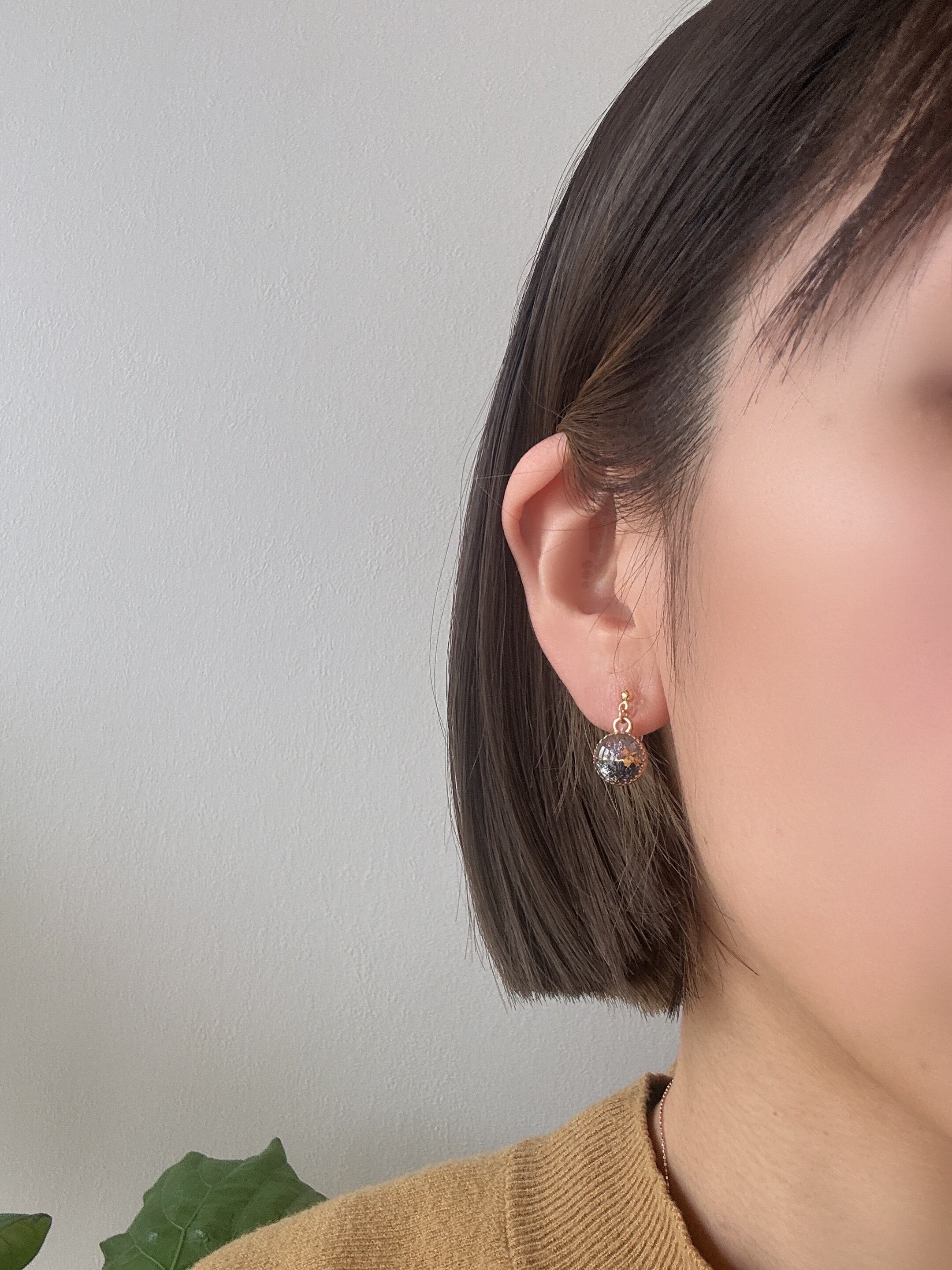 フック型ピアスパーツ(サージカルステンレスSUS316)やロングタイプ、ボールチェーン追加への変更等も可能ですので、お好きなスタイルに合わせてお楽しみください♩