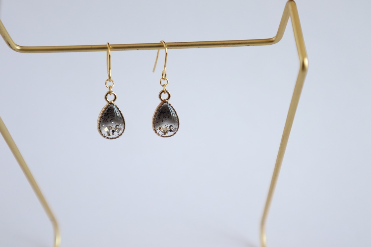 雫型【ブラック/クリア・ハーフ】ゴールドイヤリング・ピアス (金属アレルギー対応)
