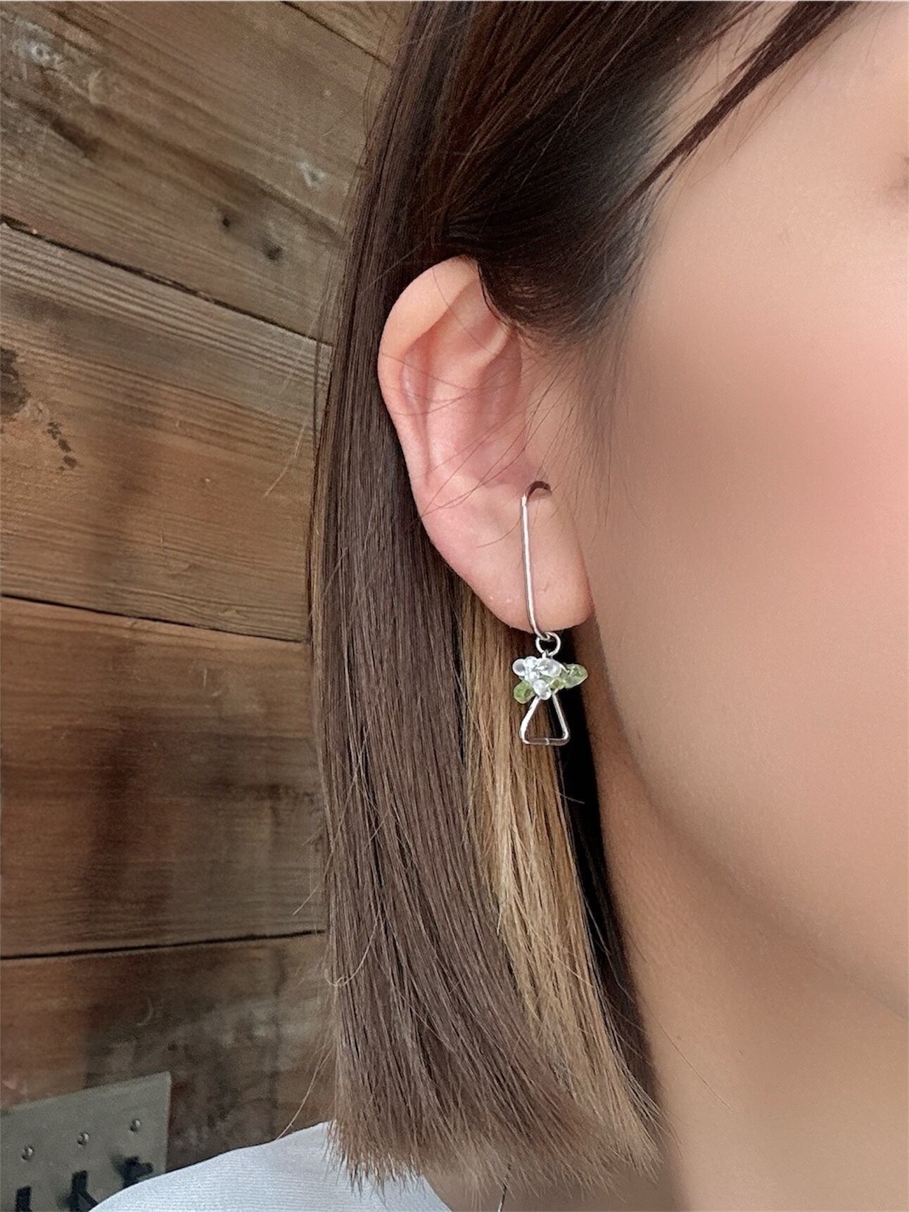 天然石ペリドットとチェコビーズを使ったイヤーカフSET。