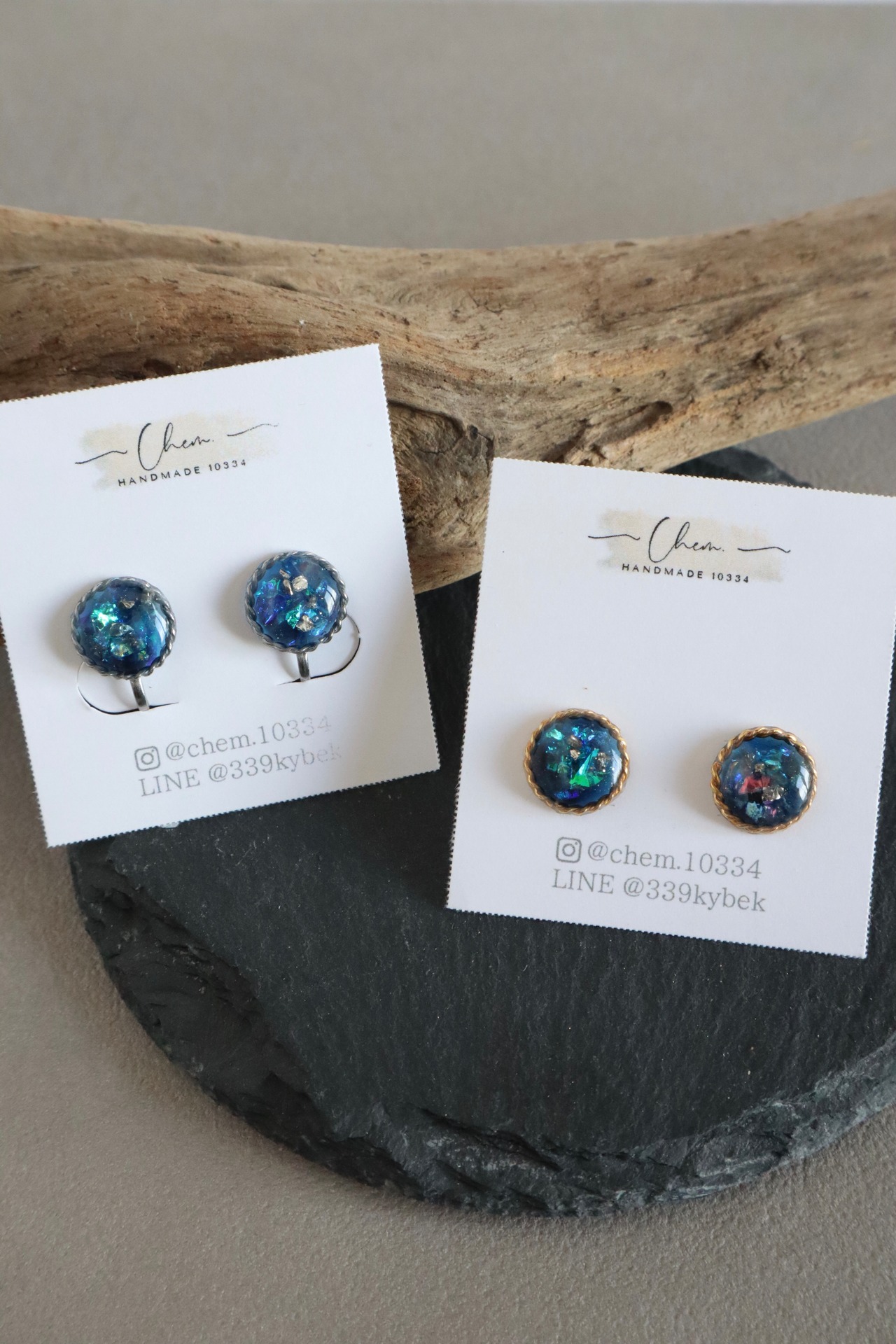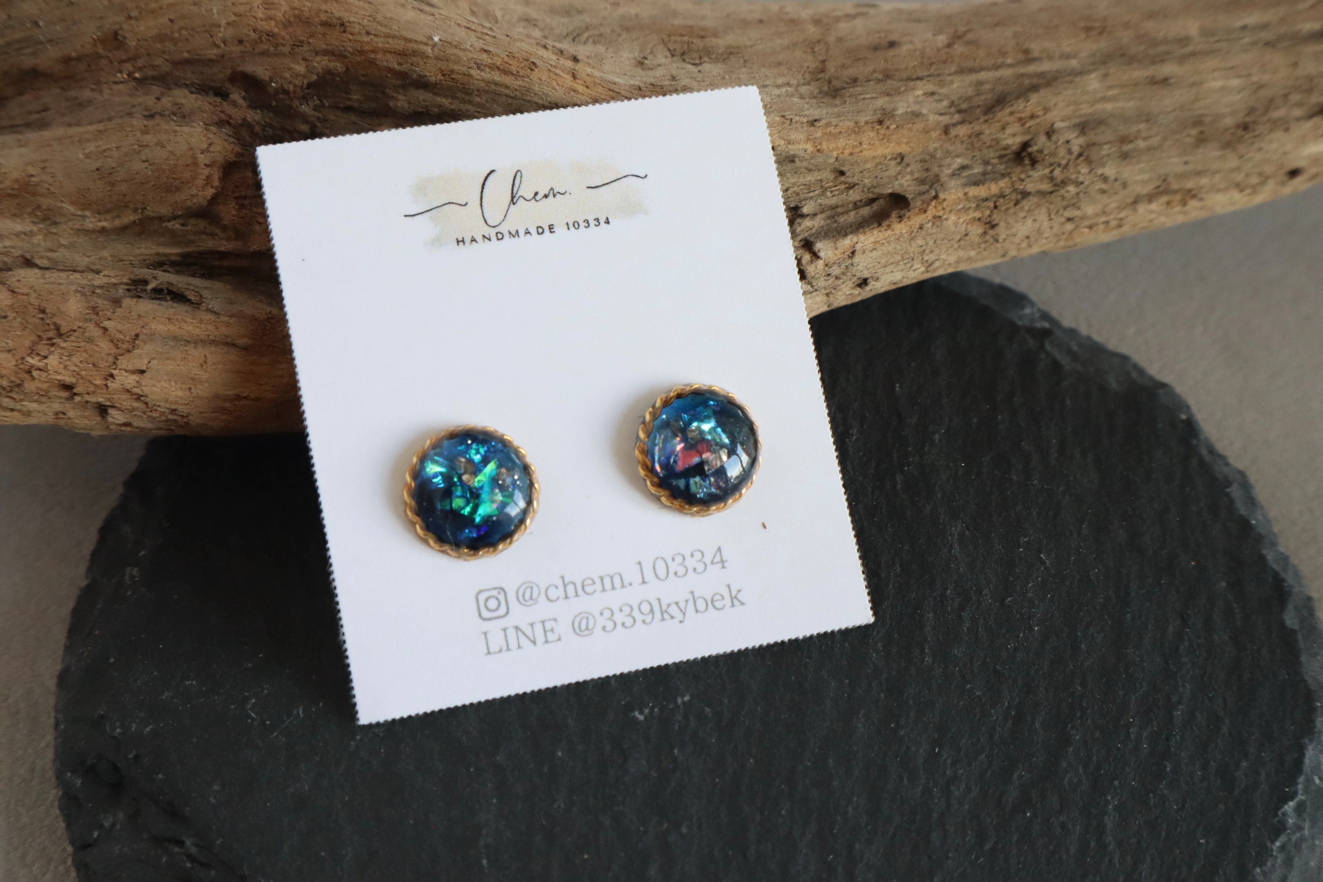 円型【ホタルガラス風レジン】ゴールドピアス (金属アレルギー対応)