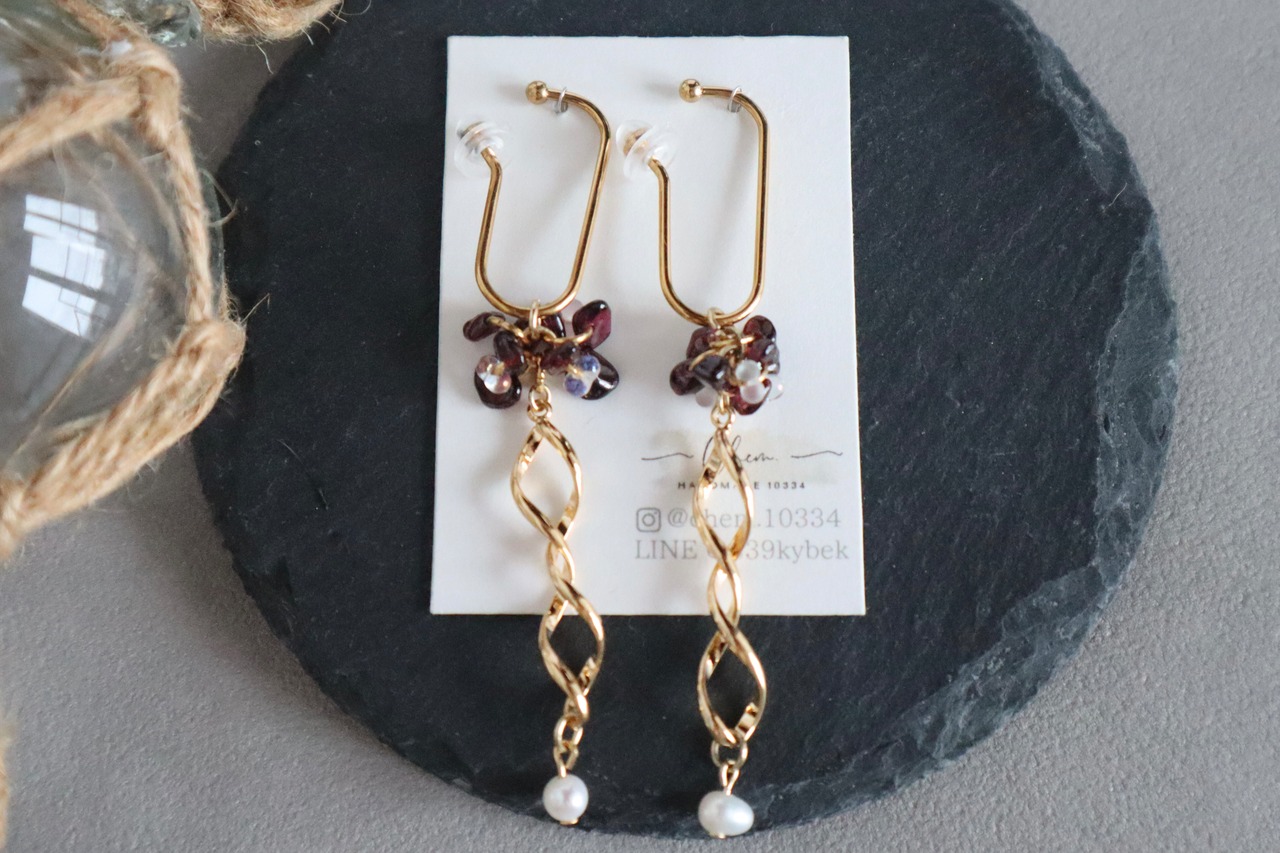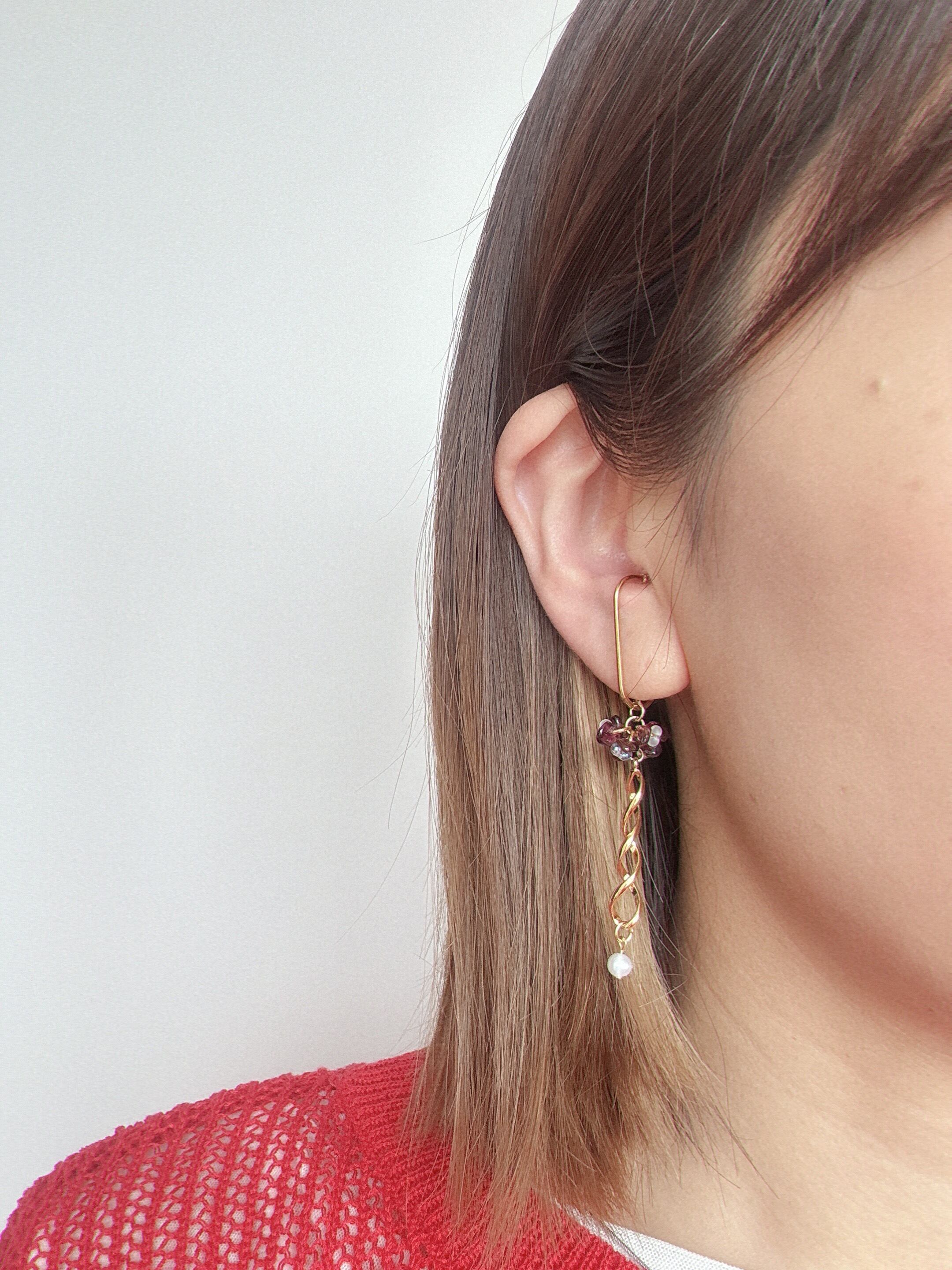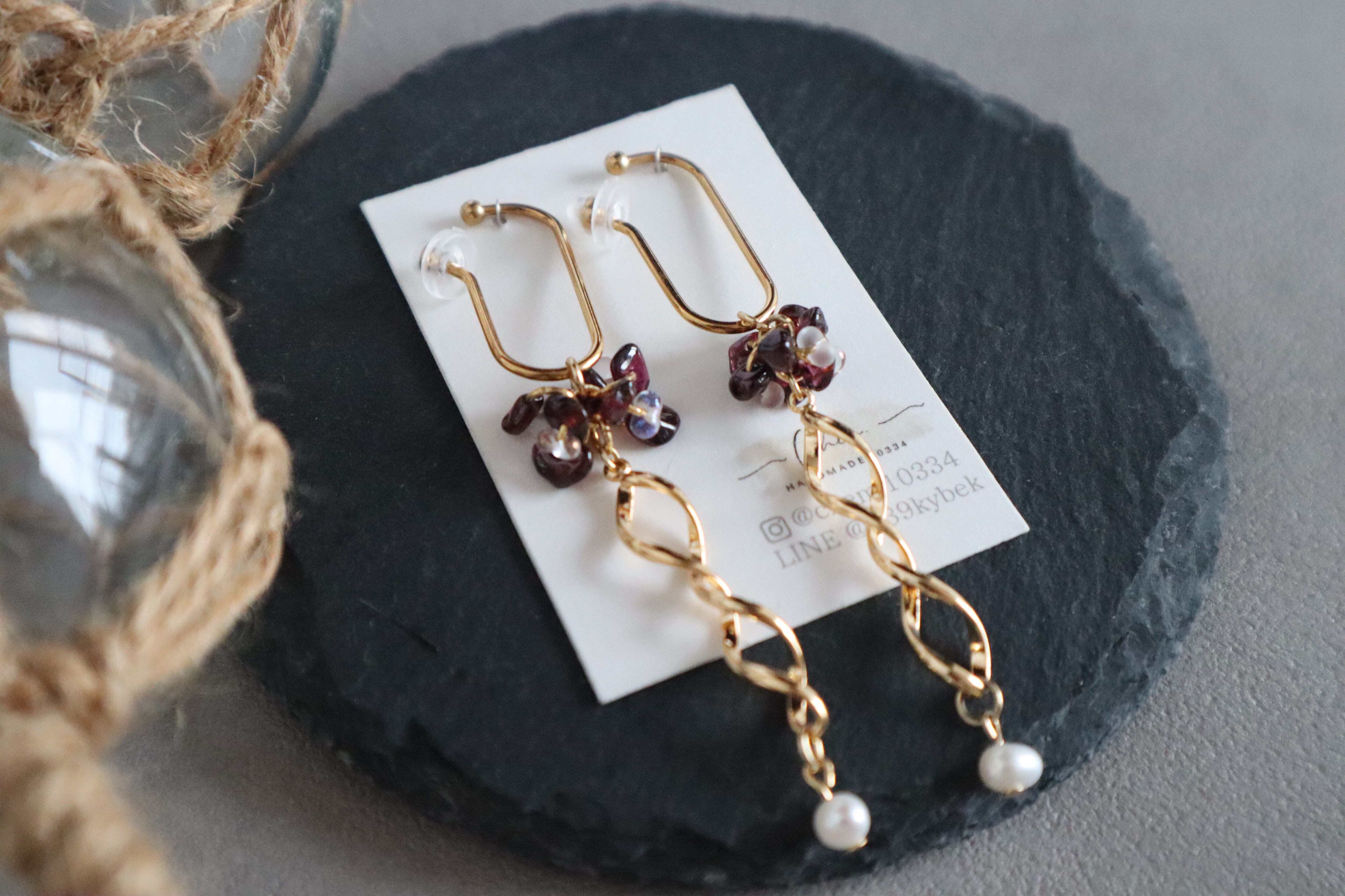 ガーネットと淡水パールを贅沢に組み合わせた、上品さと華やかさを兼ね備えたイヤーカフ。