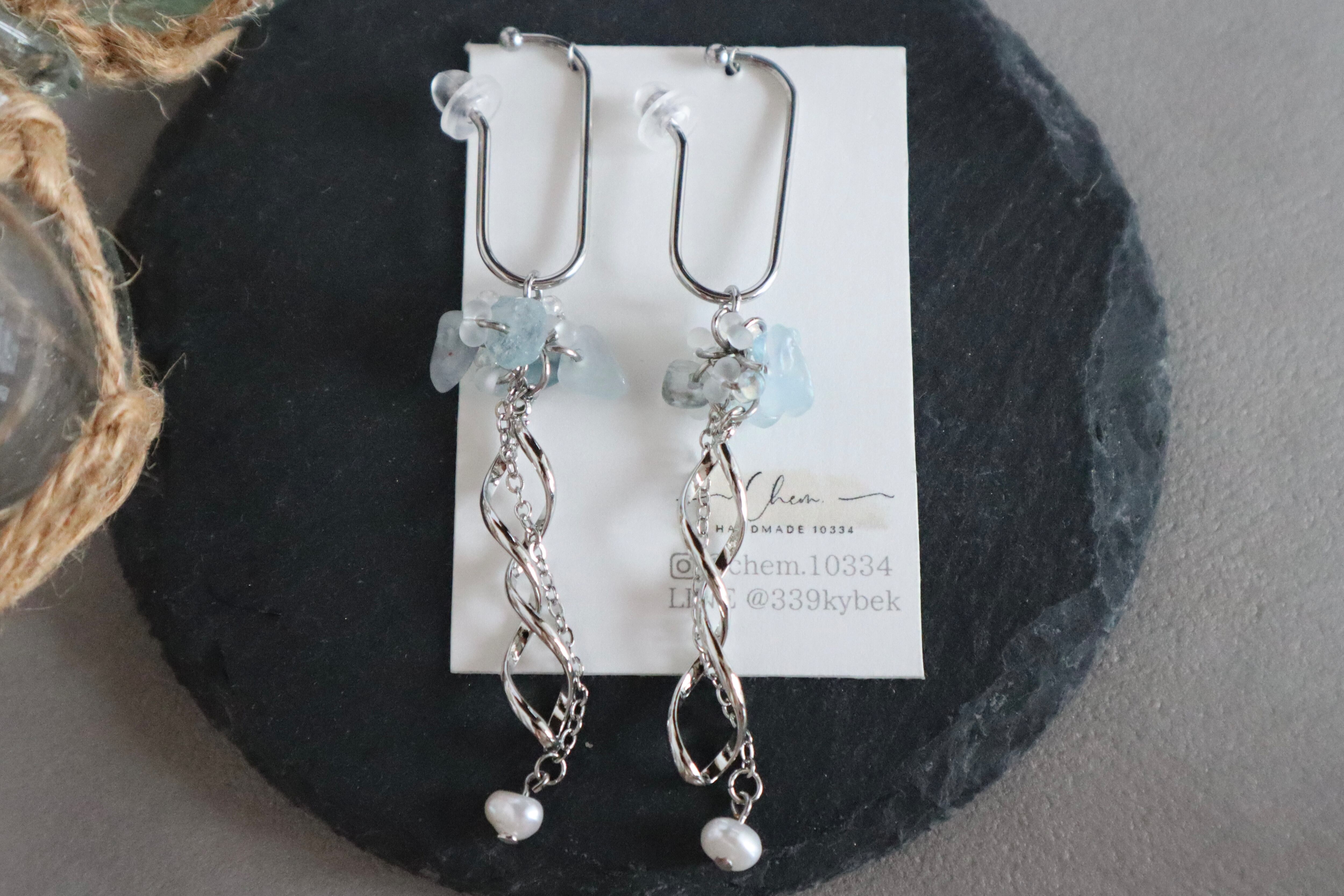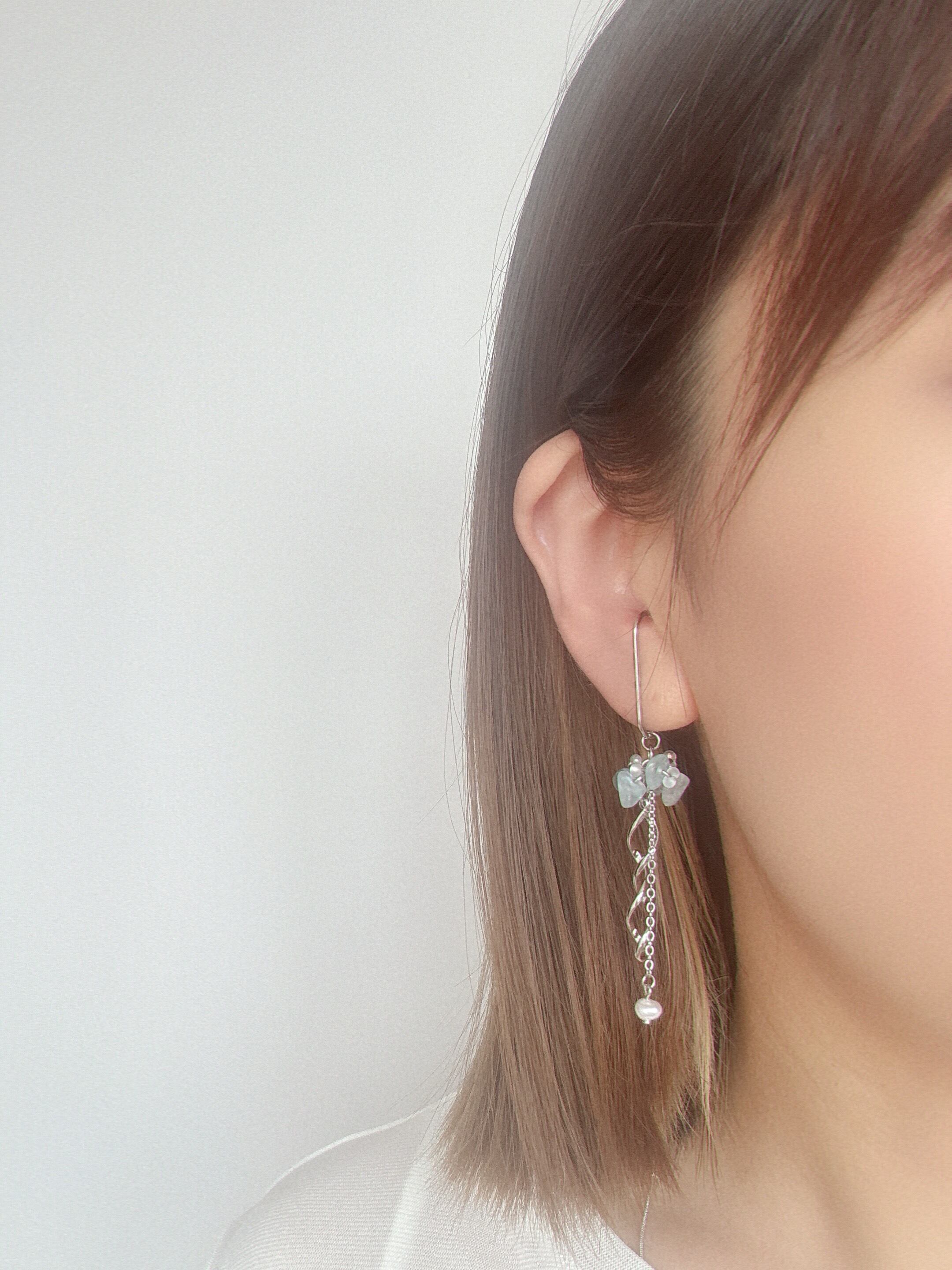 涼しげな『アクアマリン』と上品で柔らかな輝きを放つ淡水パールが彩るイヤーカフSET。