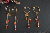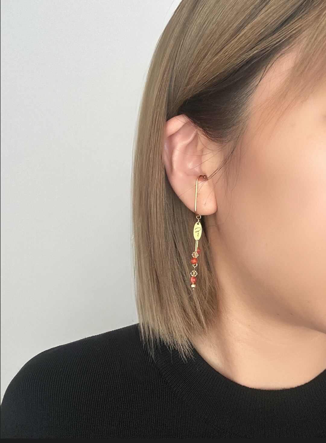 <選べる> 新作レイヤーイヤーカフSET ロゴチャーム付き イヤーカフSET ゴールド【カーネリアンサードオニキス】(金属アレルギー対応)