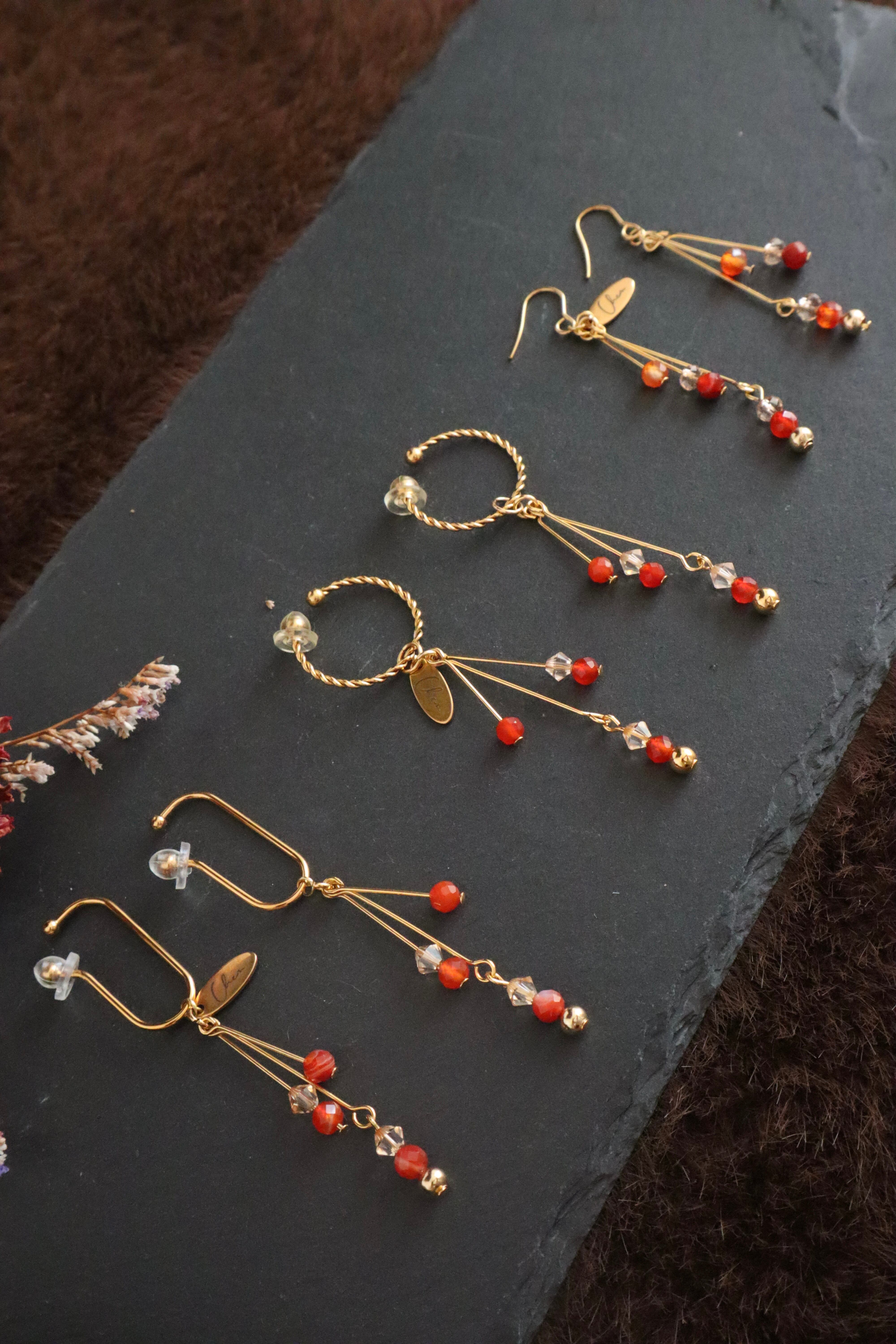 カーネリアンサードオニキスを使用した、動くたびに重なり揺れるレイヤーデザイン。