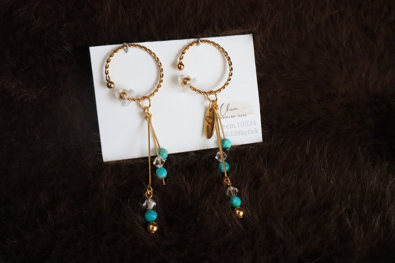 ターコイズ(トルコ石)を使用した、動くたびに重なり揺れるレイヤーデザイン。
