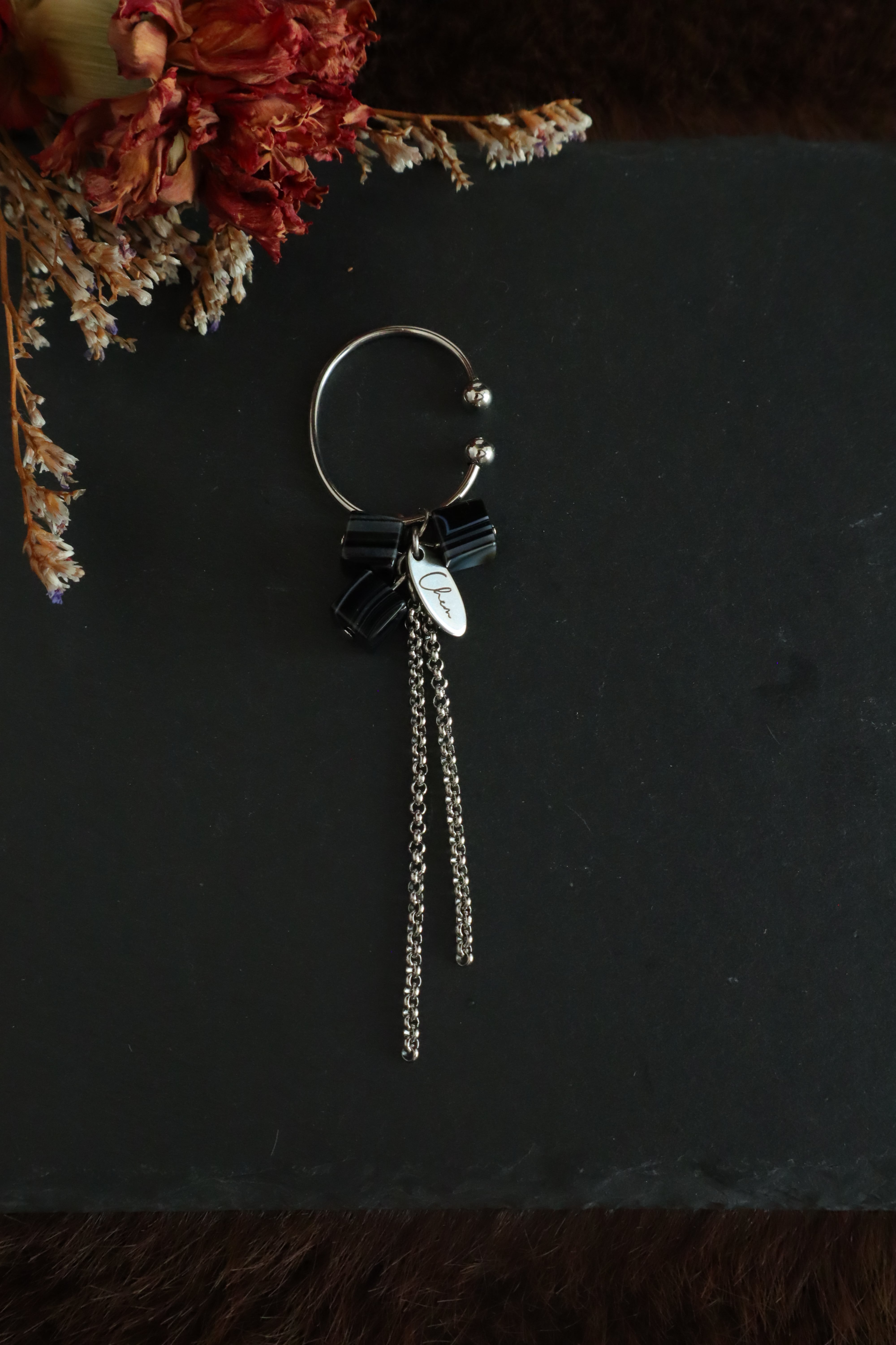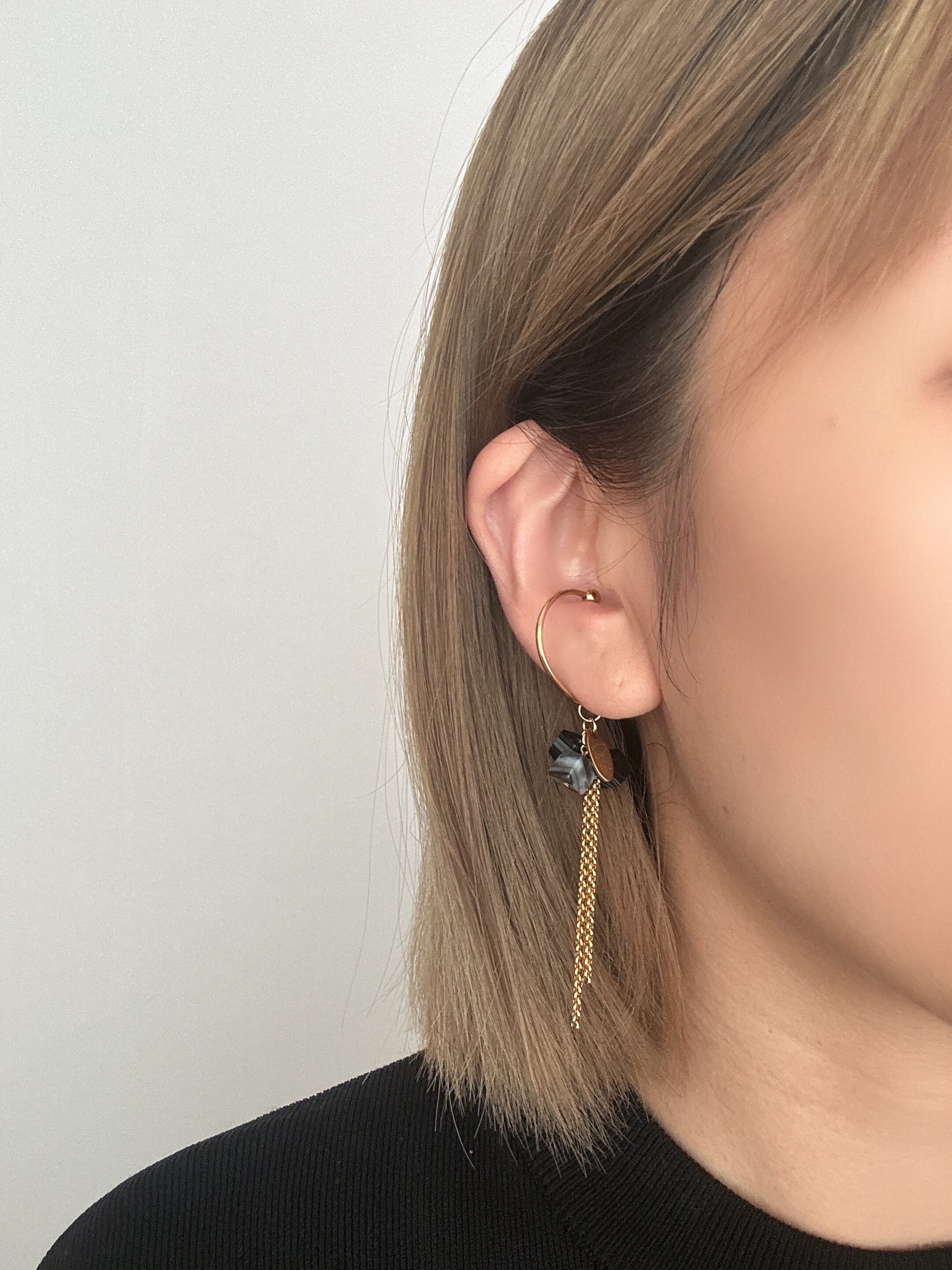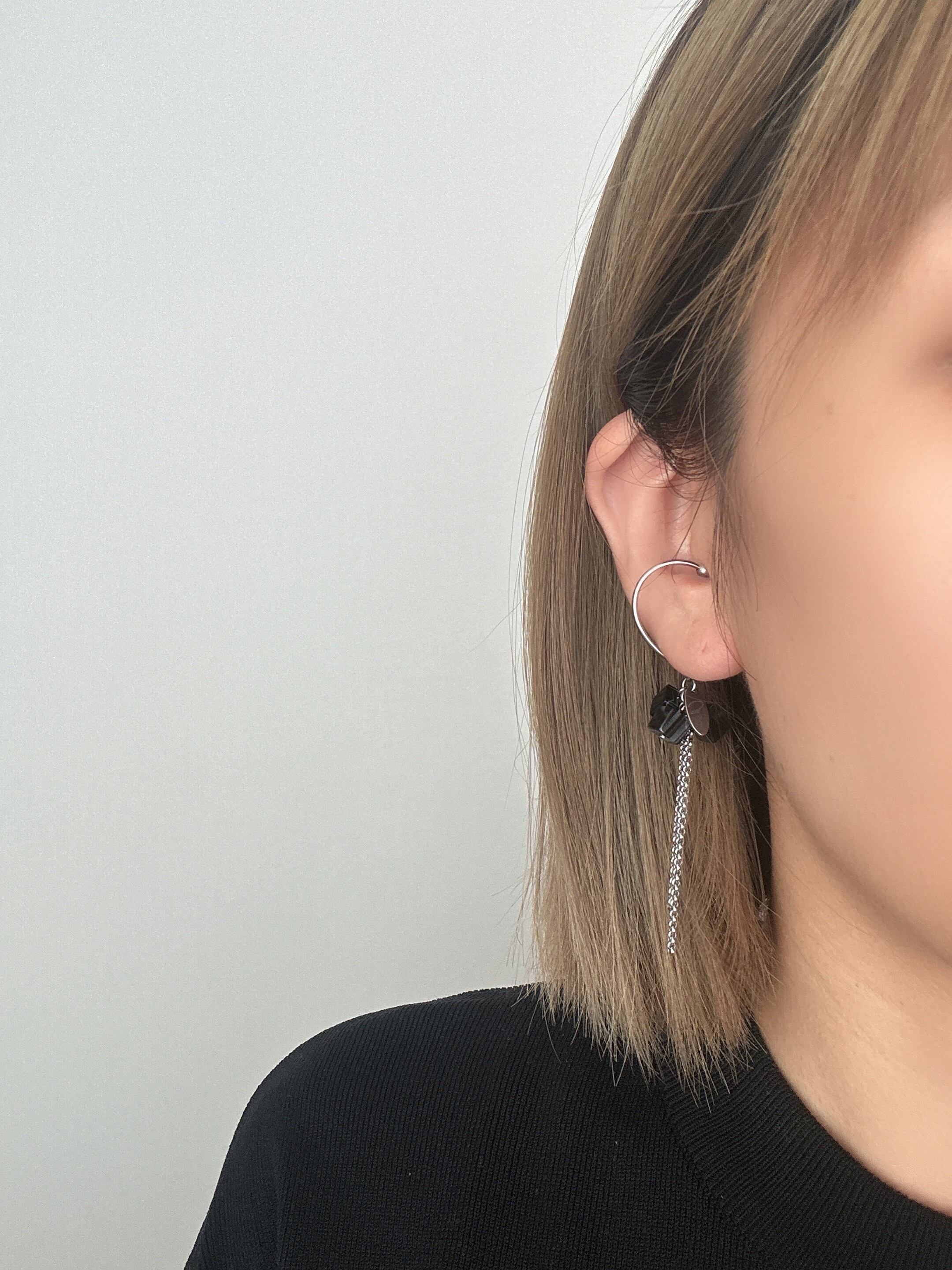 キューブ型のオニキス使用した、動くたびに揺れるイヤーカフ