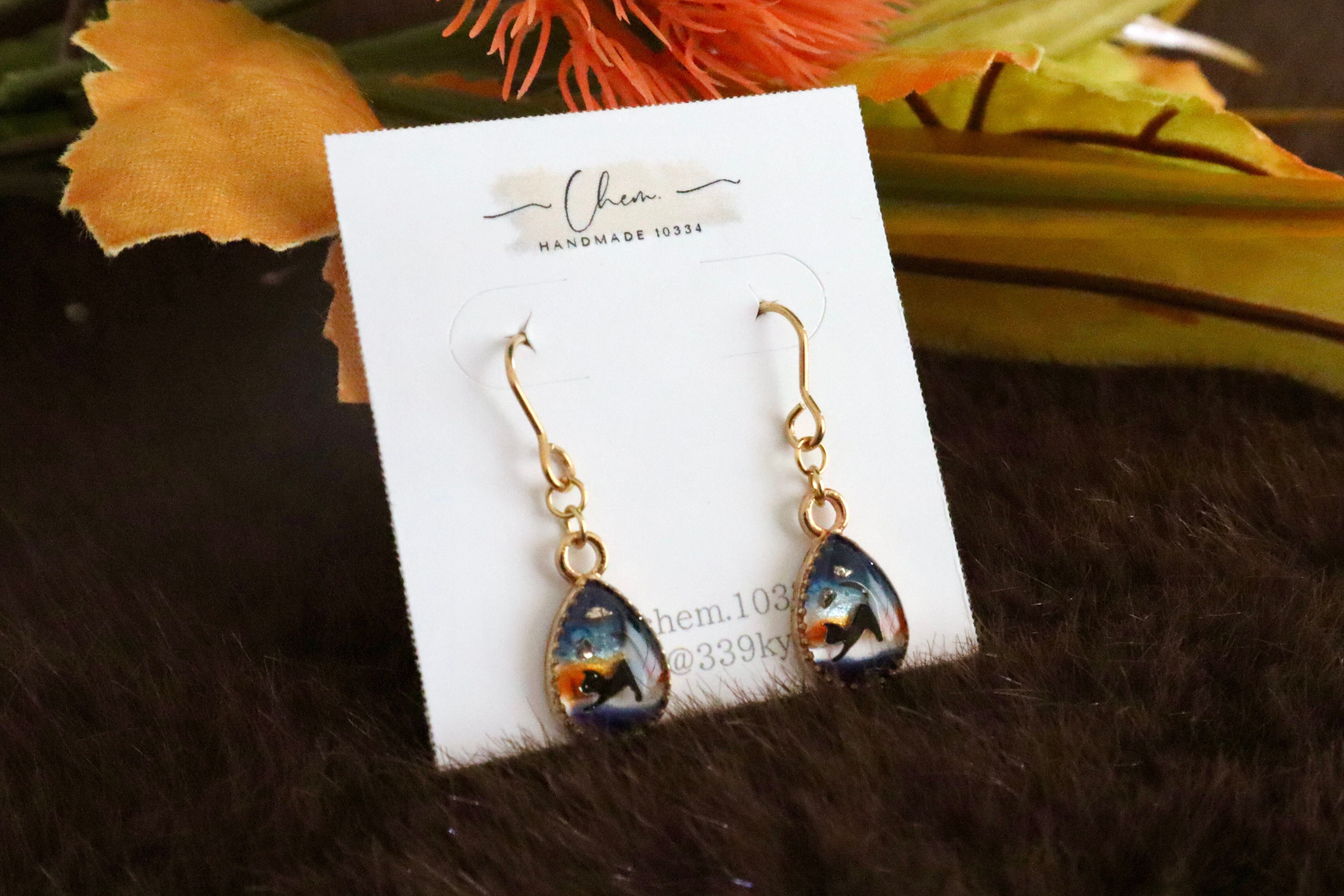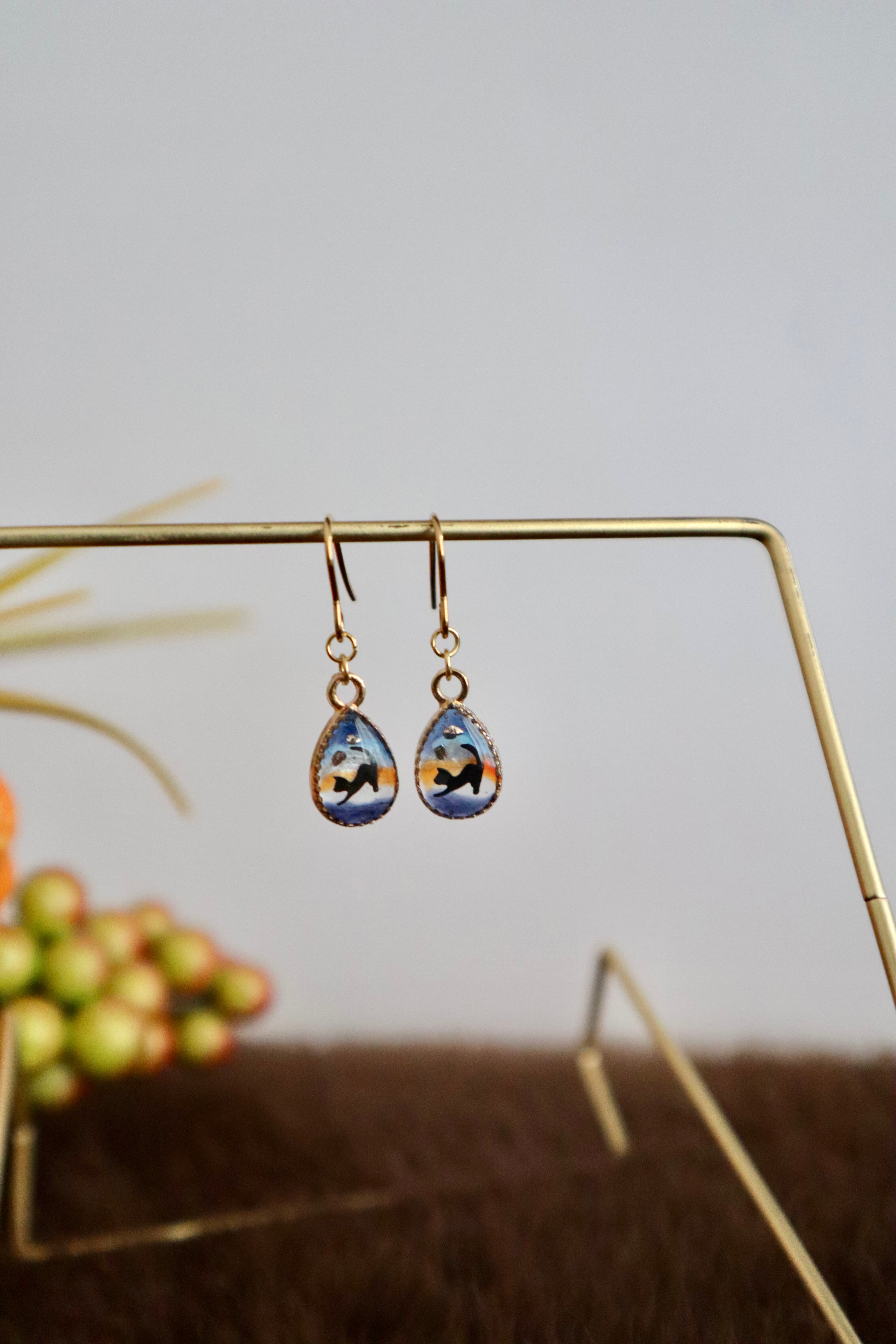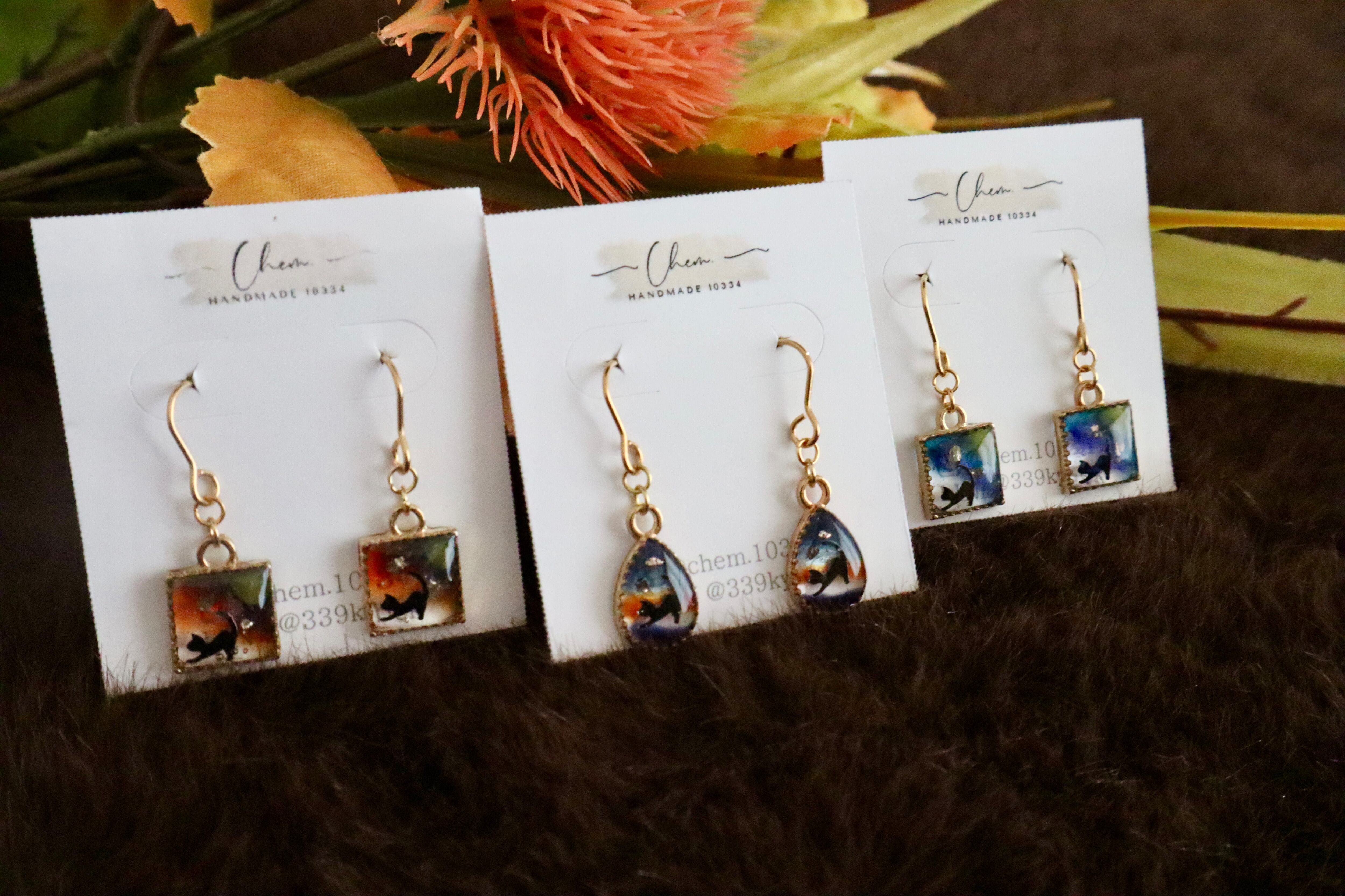 雫型 レジン【黒ネコ×ゴールデンアワー】イヤリング・ピアス