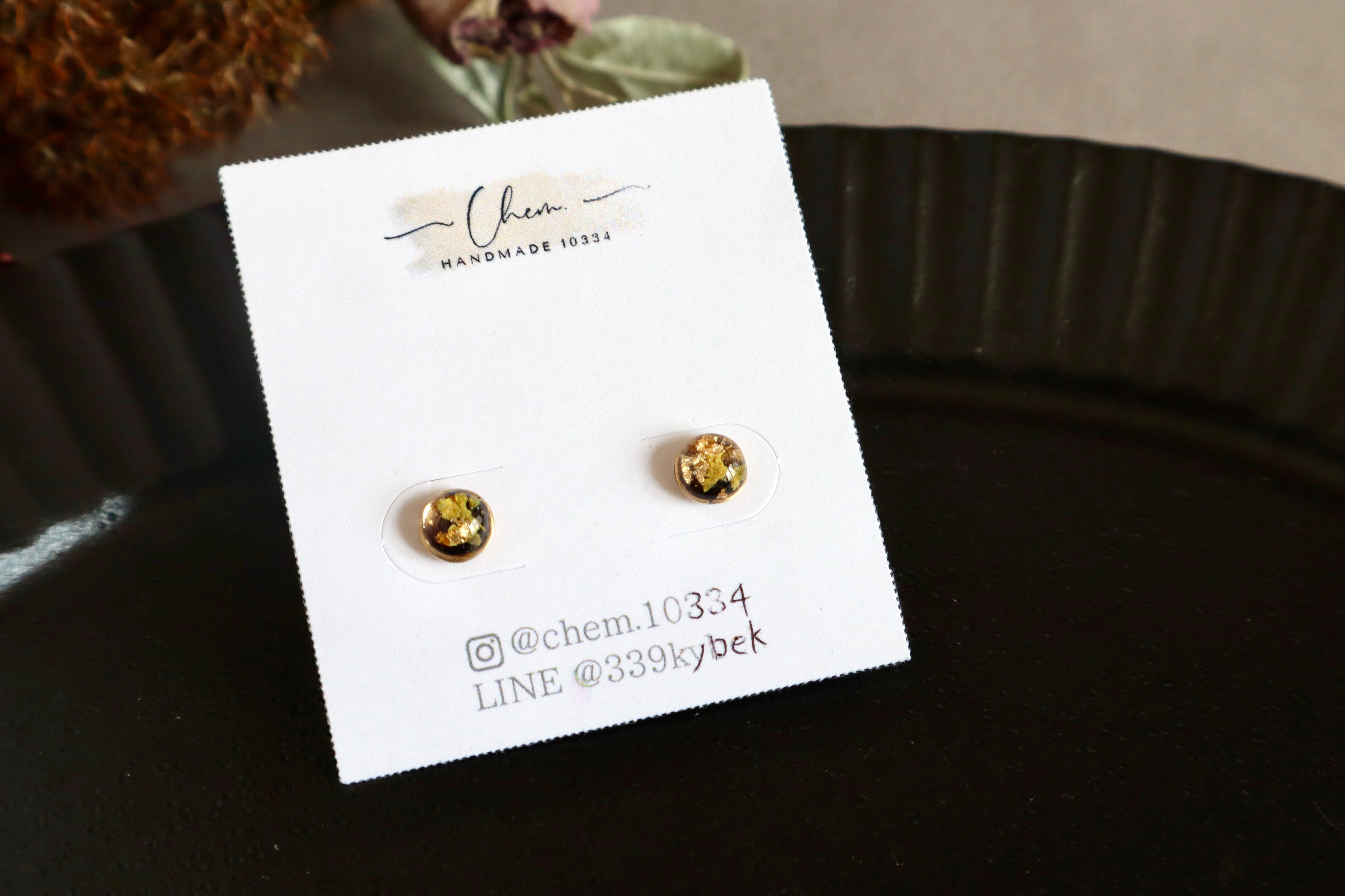 一粒ピアスにドライフラワーと金箔風パーツを詰め込みました。
