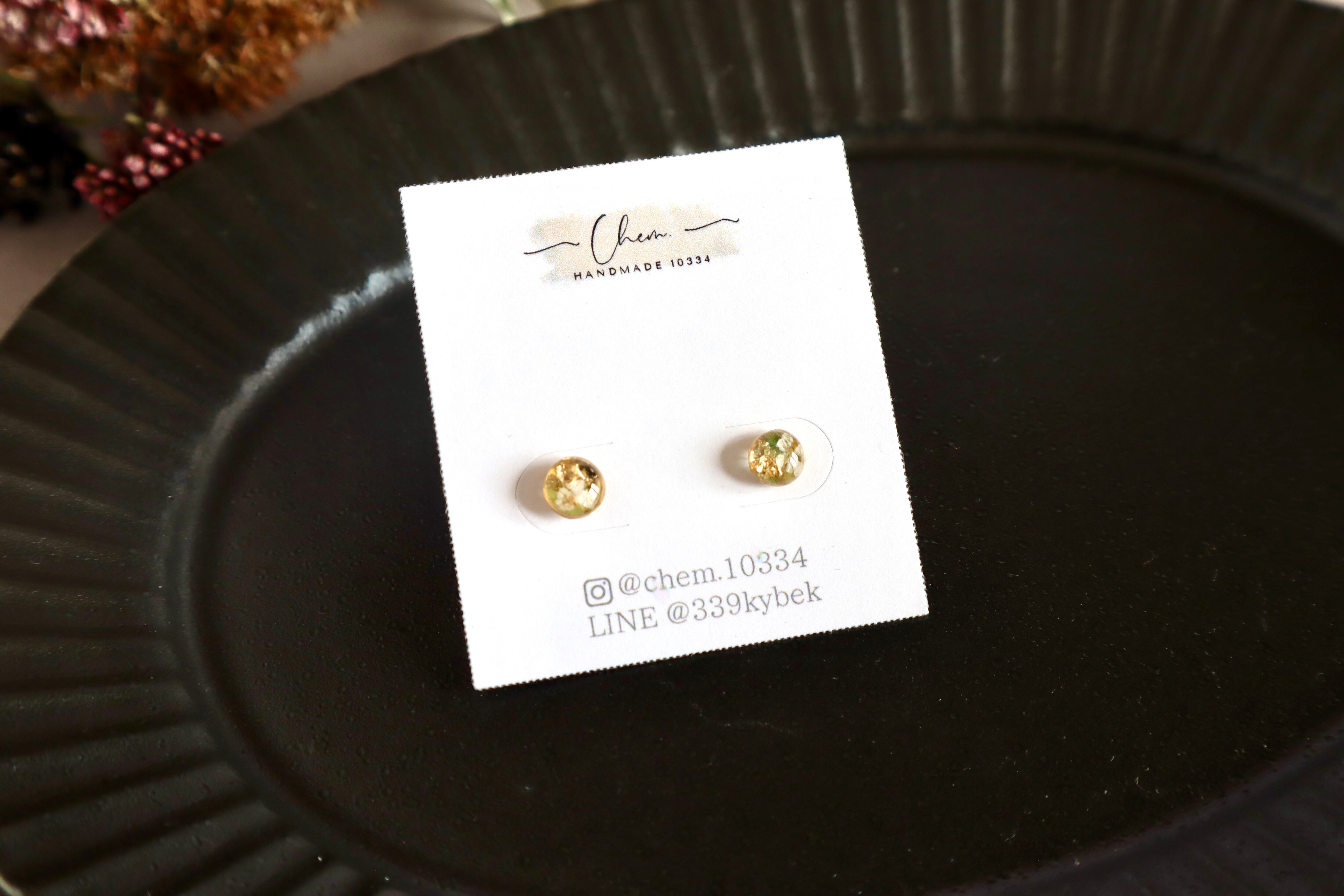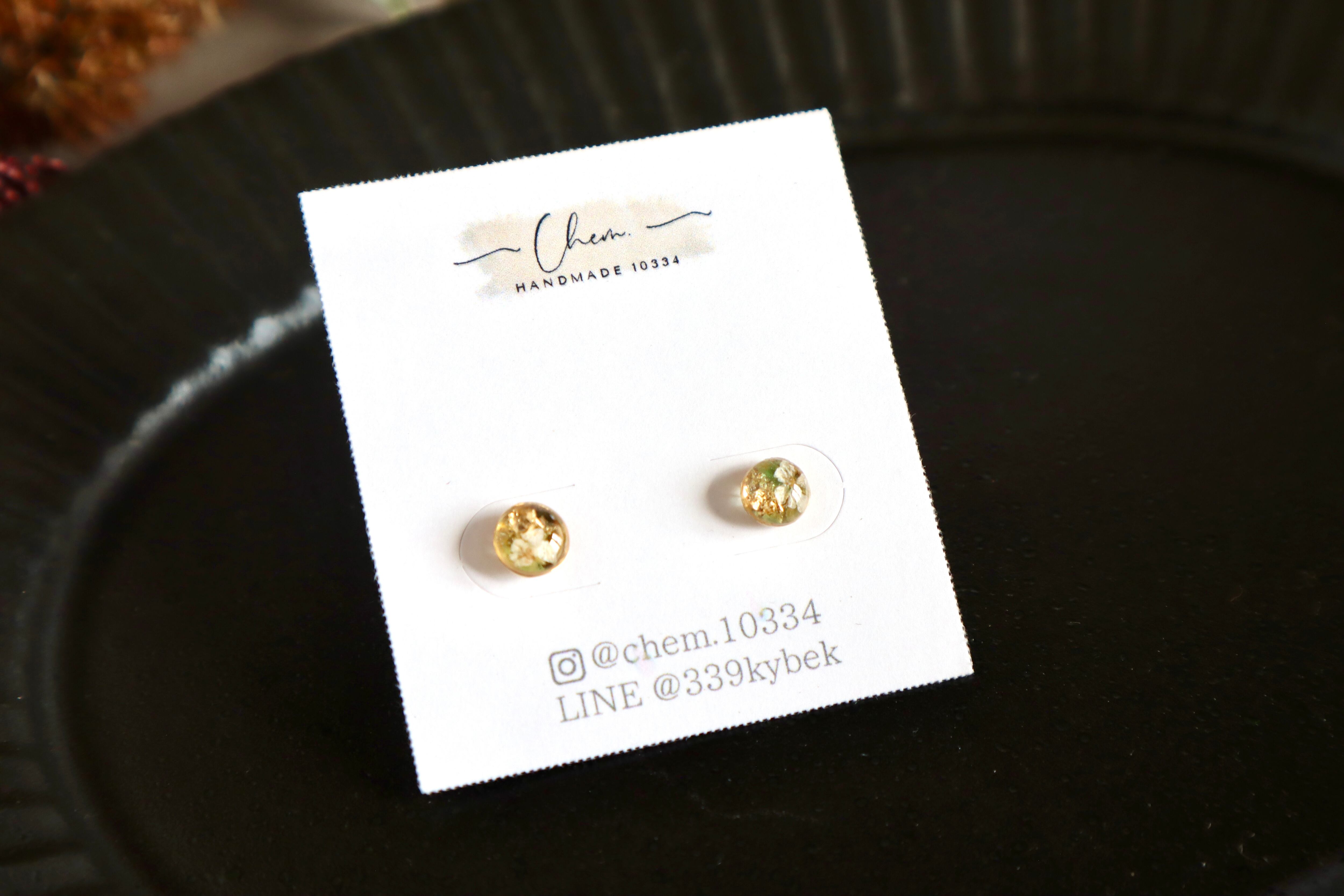 一粒ピアス 【ドライフラワー×レジン】ゴールドピアス (金属アレルギー、対応)